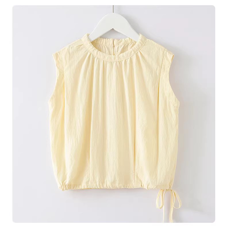 - Áo ba lỗ bé gái hè 2025 kiểu mới, áo thun trẻ em dáng suông, thiết kế trẻ trung, có dây rút, mặc hè