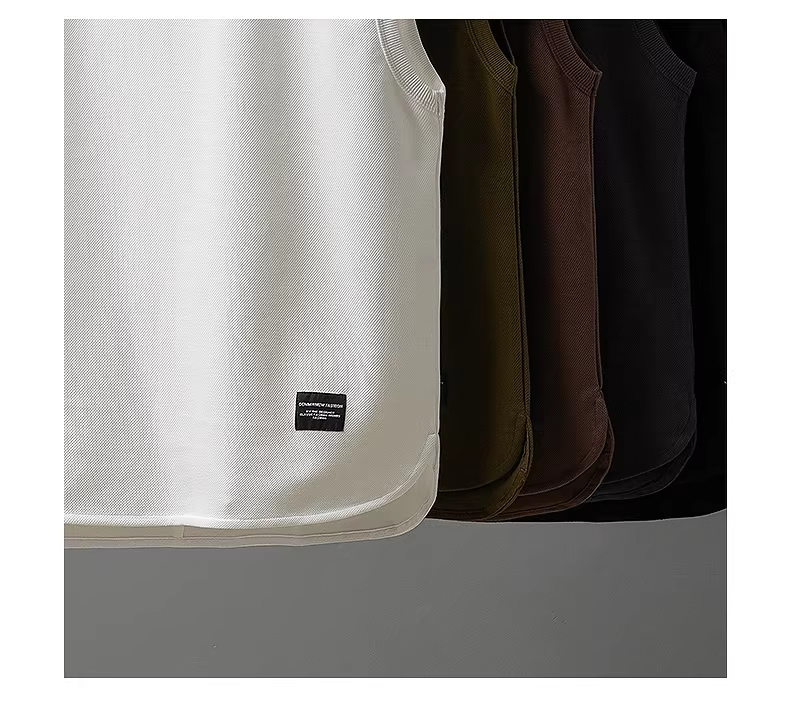 - Áo ba lỗ cotton pique dày dặn dành cho nam, mẫu mới hè 2024, thương hiệu thời thượng, kiểu dáng rộng vai, áo thể thao tập luyện, áo thun không tay.