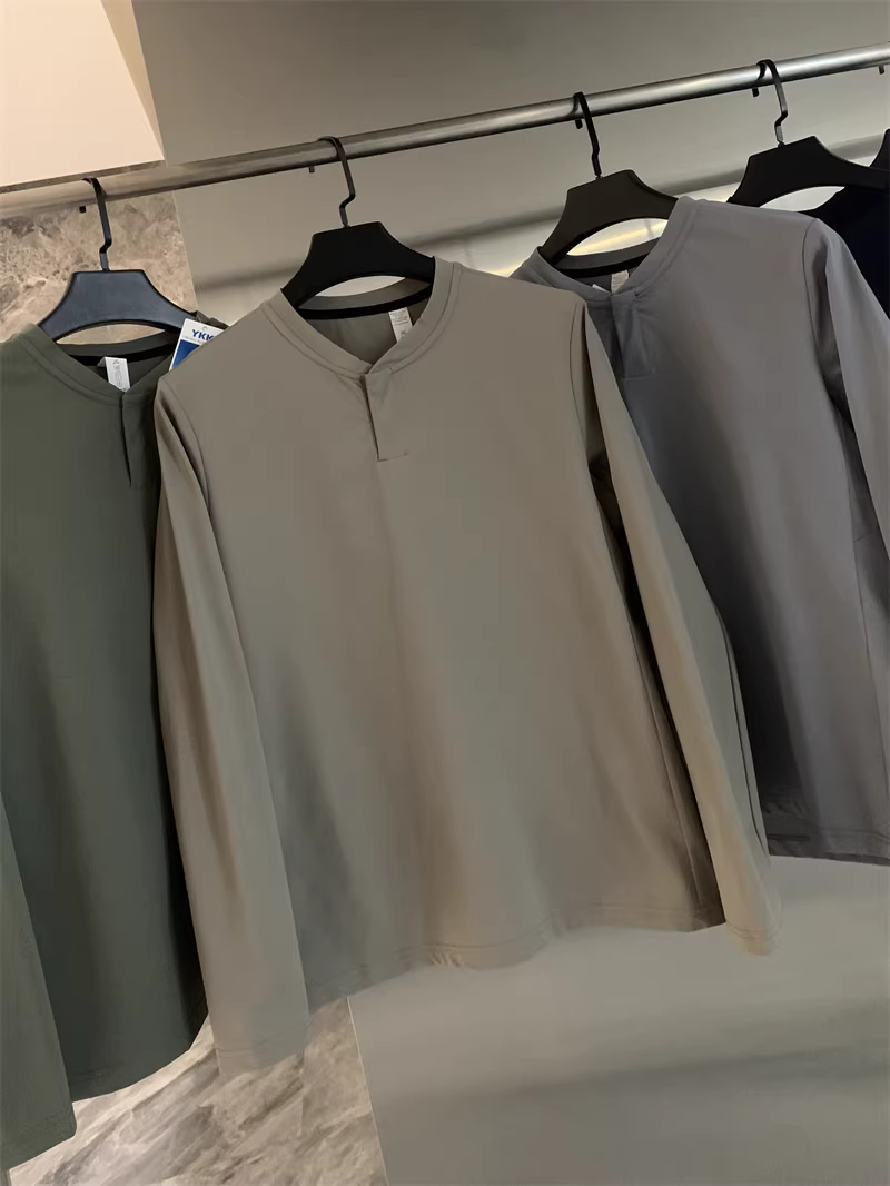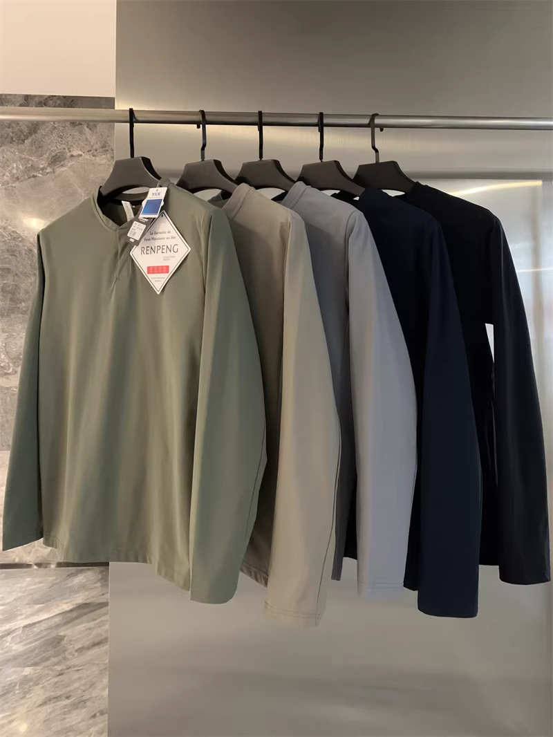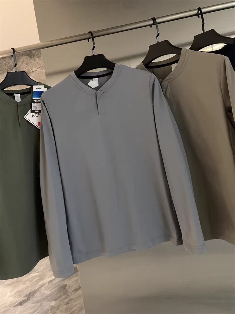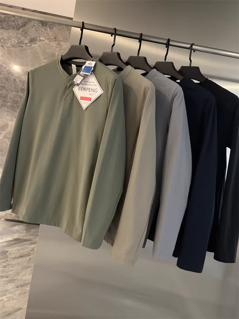 Áo cổ Henry kiểu Âu Mỹ của Don Quixote! Áo nỉ nam màu trơn nhanh khô, thể thao, đa năng, hợp thời trang