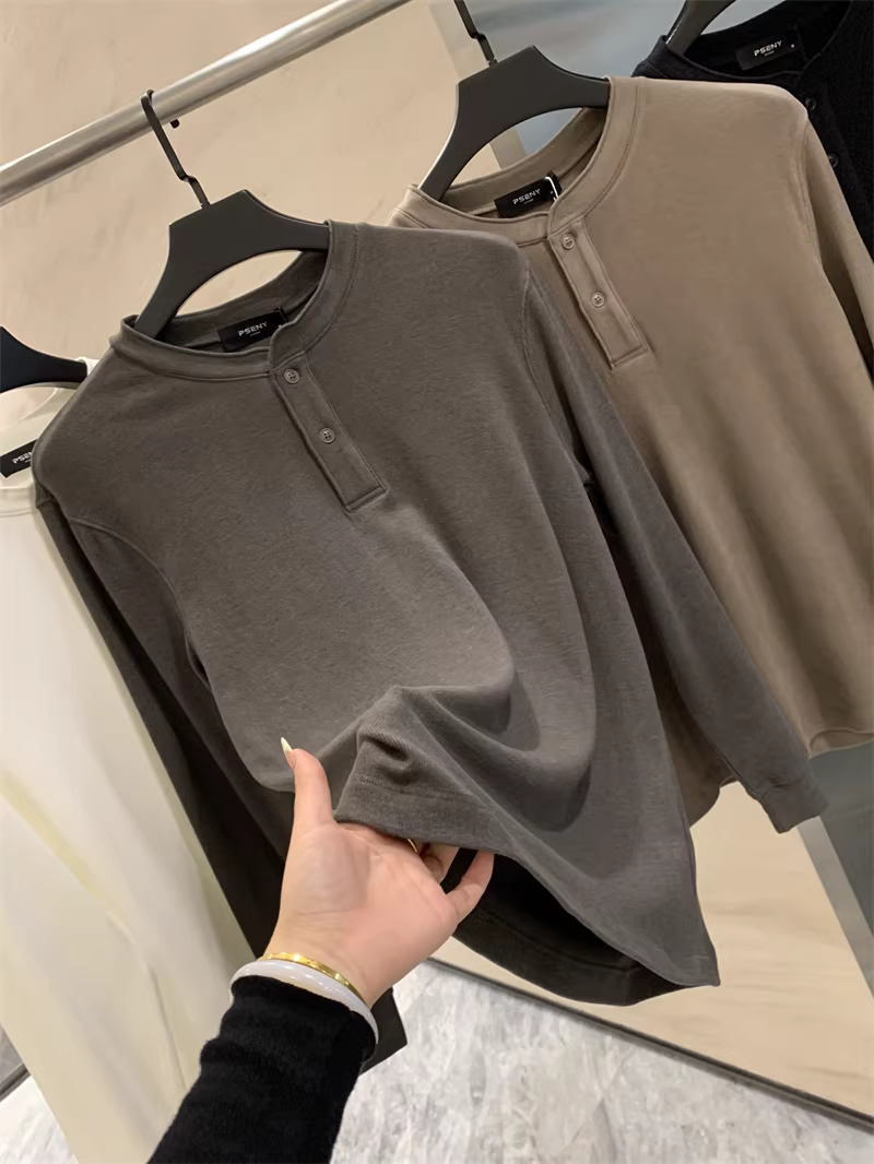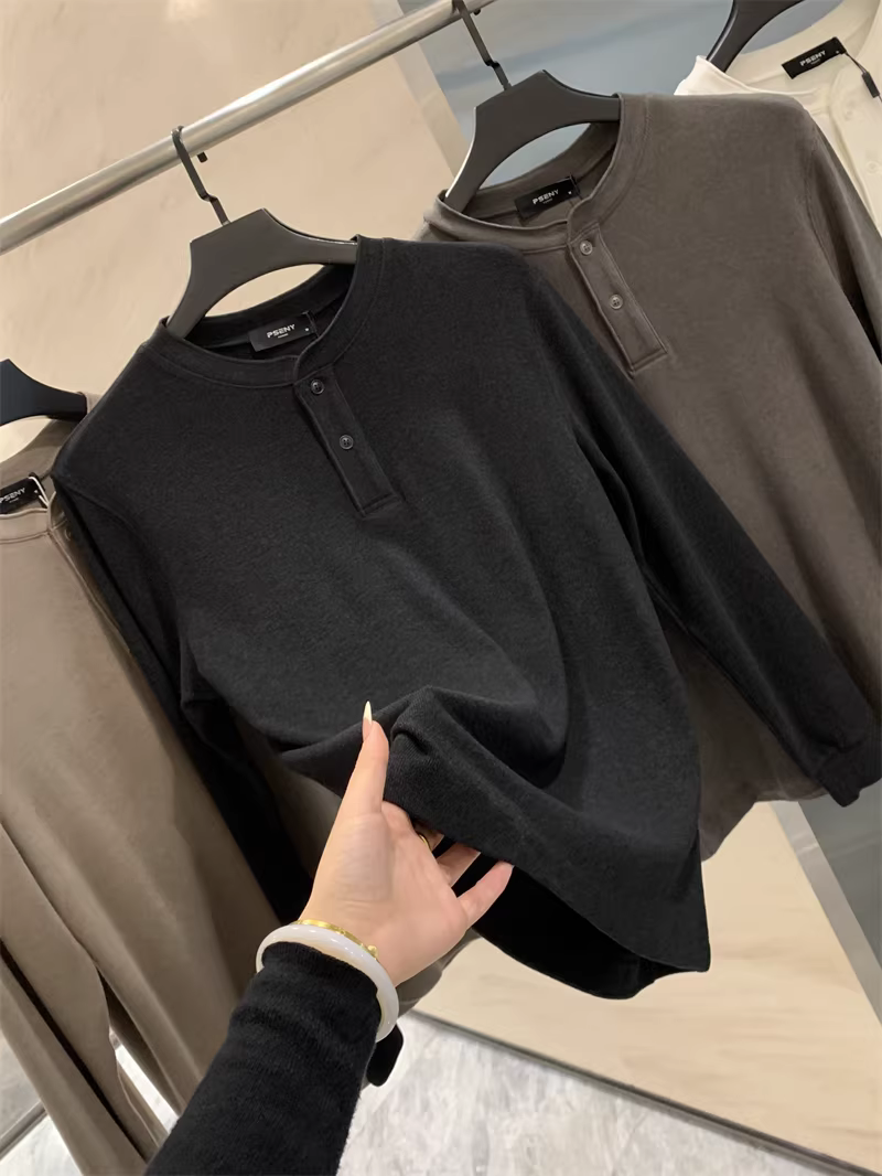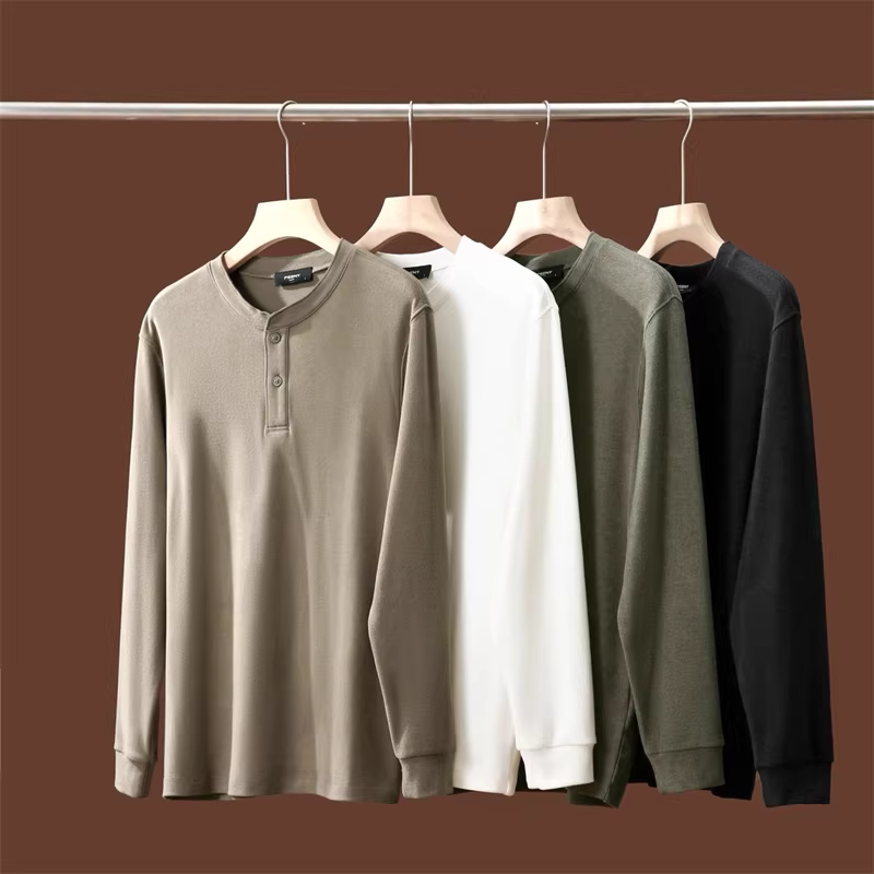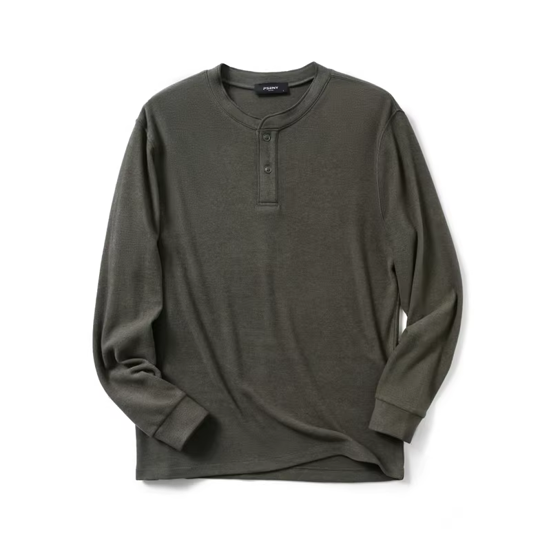 Áo giữ nhiệt Don Quixote! Áo len lông cừu ấm áp mùa thu đông, cổ Henry kiểu Mỹ cổ điển, áo lót dài tay giữ ấm cho nam.