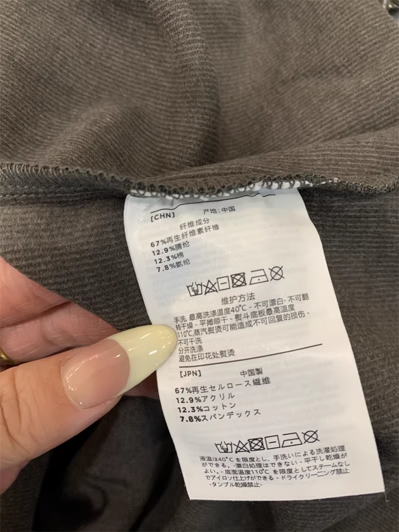 67%再生纤维素纤维+12.9%腈纶+12.3%棉+7.8%氨纶
