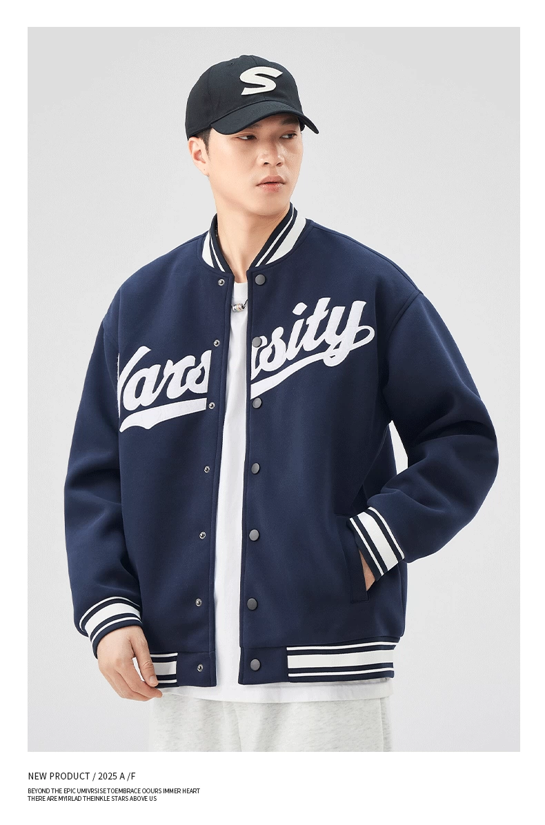 - Áo khoác bóng chày hạng nặng OMZM500G dành cho nam, áo khoác ấm thêu cổ điển kiểu Mỹ mùa thu đông, áo khoác bomber phong cách đại học