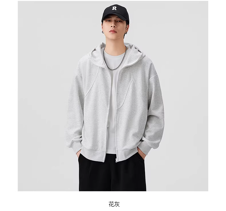 - Áo khoác cardigan có mũ trùm đầu hạng nặng 420G dành cho nam, mùa xuân thu, phong cách Mỹ, thiết kế thời trang, kiểu dáng phối màu, áo khoác có khóa kéo