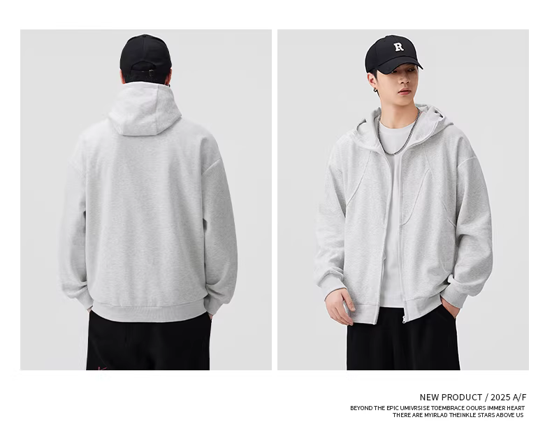 Áo khoác cardigan có mũ trùm đầu hạng nặng 420G dành cho nam, mùa xuân thu, phong cách Mỹ, thiết kế thời trang, kiểu dáng phối màu, áo khoác có khóa kéo