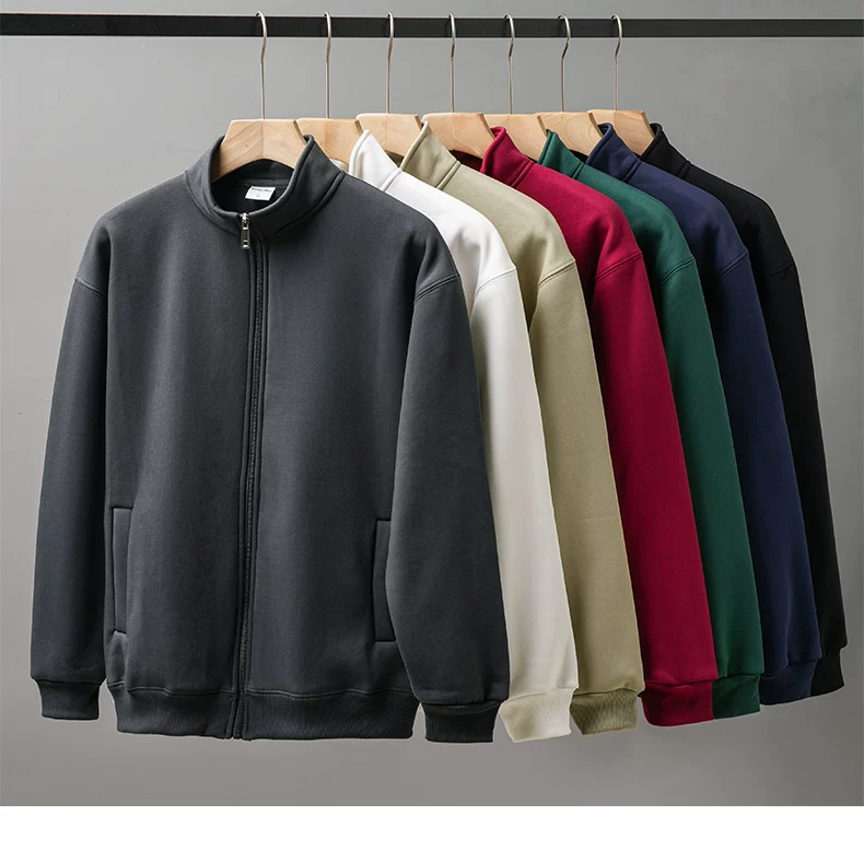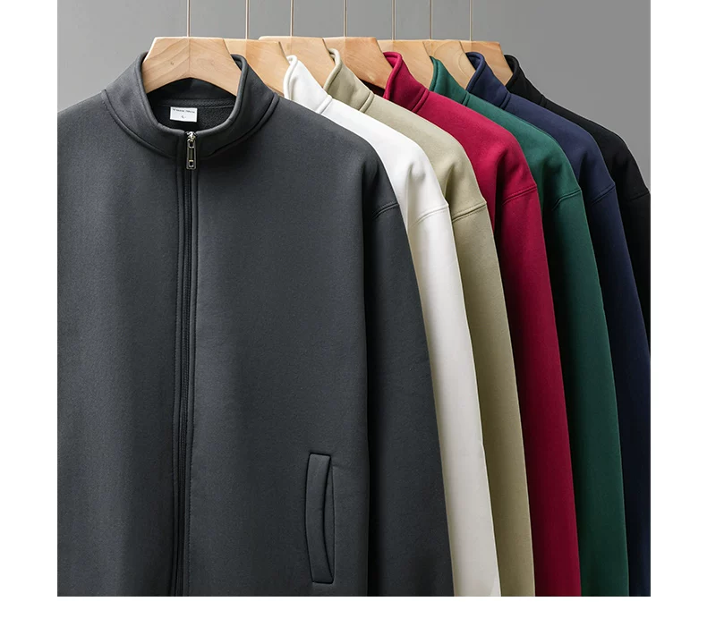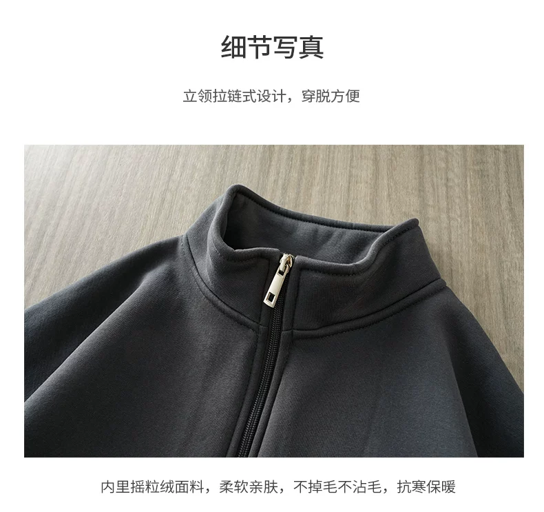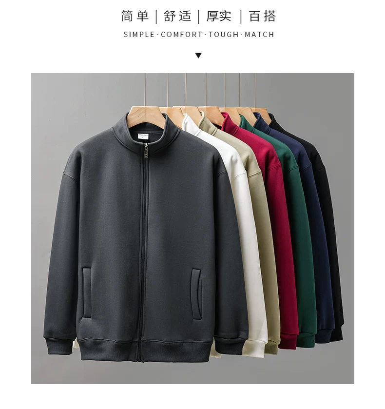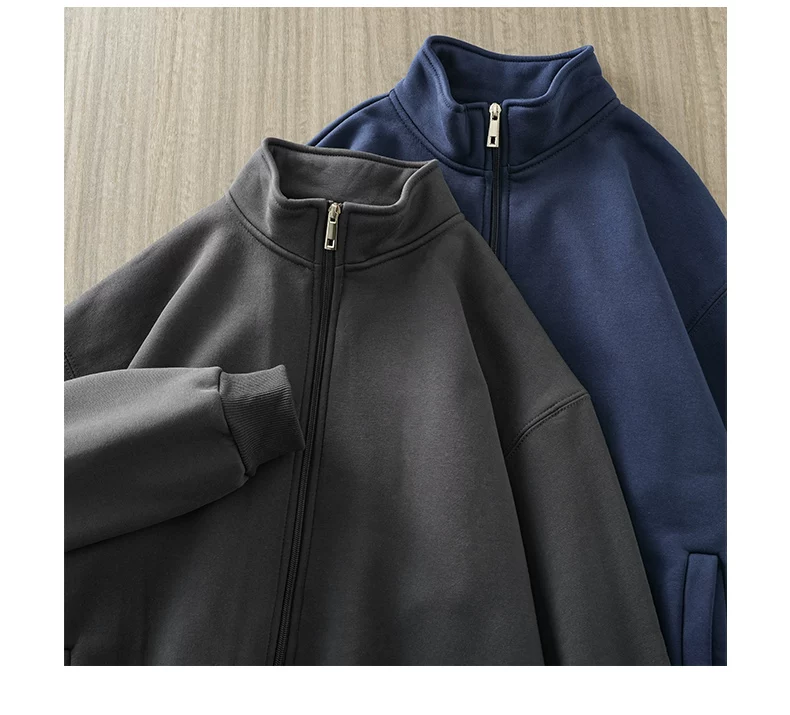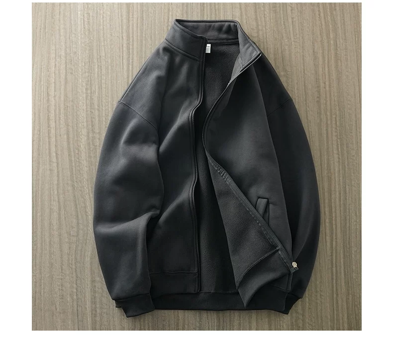 Áo khoác cardigan nam cổ đứng lót lông cừu dày dặn 460G, mùa thu đông 2025, chất liệu lông cừu dày giữ ấm, có khóa kéo