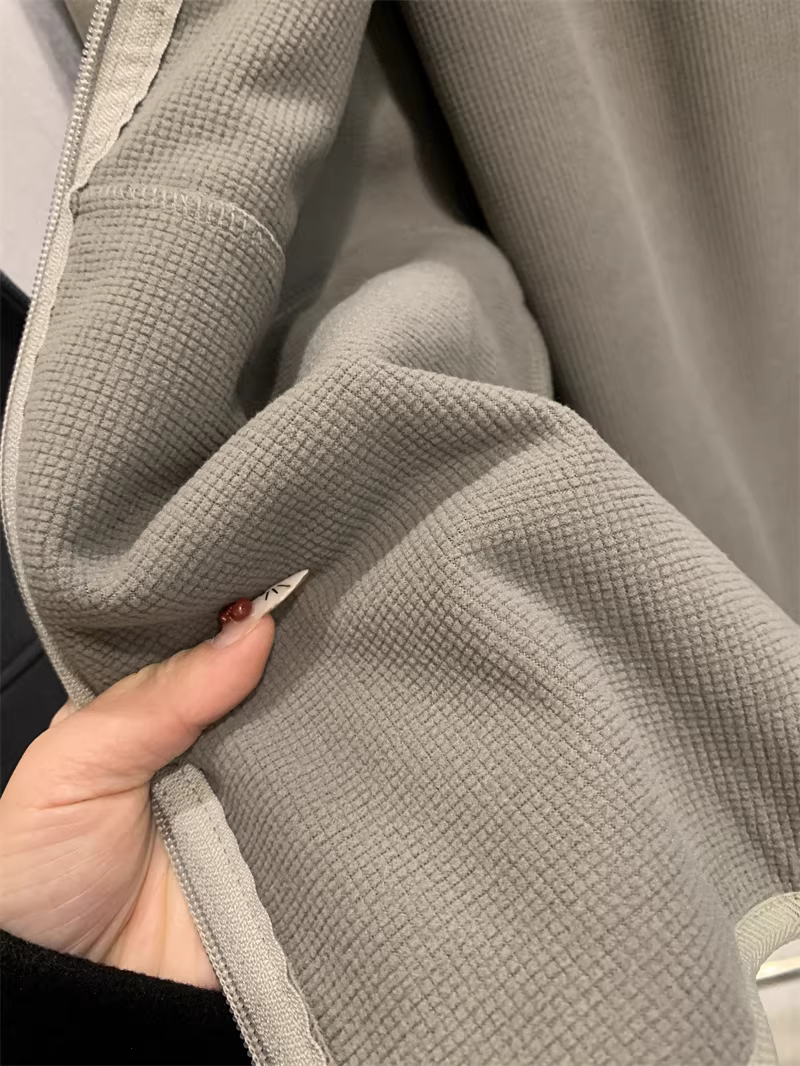 Áo khoác cardigan nam có mũ trùm đầu, chất liệu nhung kẻ caro Don Quixote! Chống gió và giữ ấm! Áo khoác thể thao ngoài trời mùa thu đông.