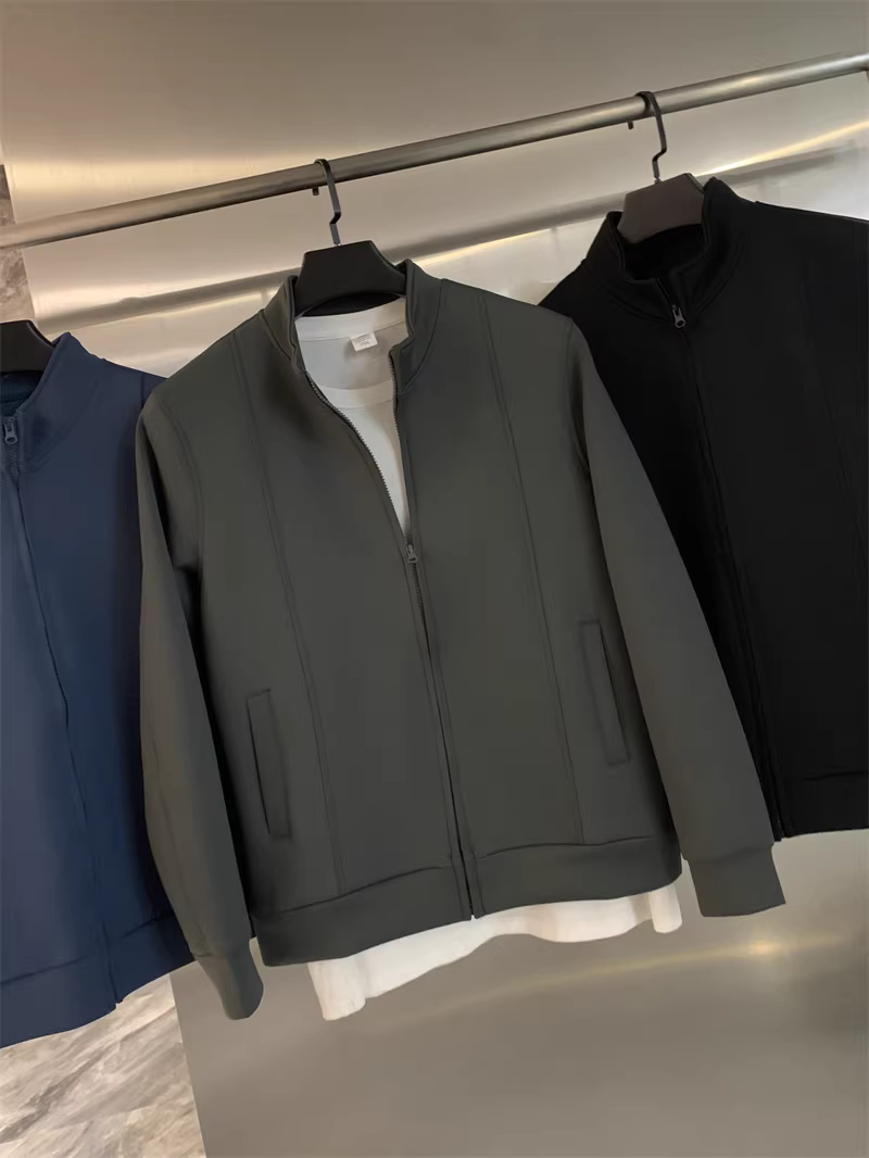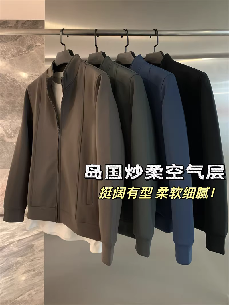 Áo khoác cổ đứng chất liệu mềm mại như mây, co giãn Q-elastic, thoáng khí, kiểu dáng năng động dành cho nam và nữ, sản xuất bởi Don Quixote Nhật Bản.