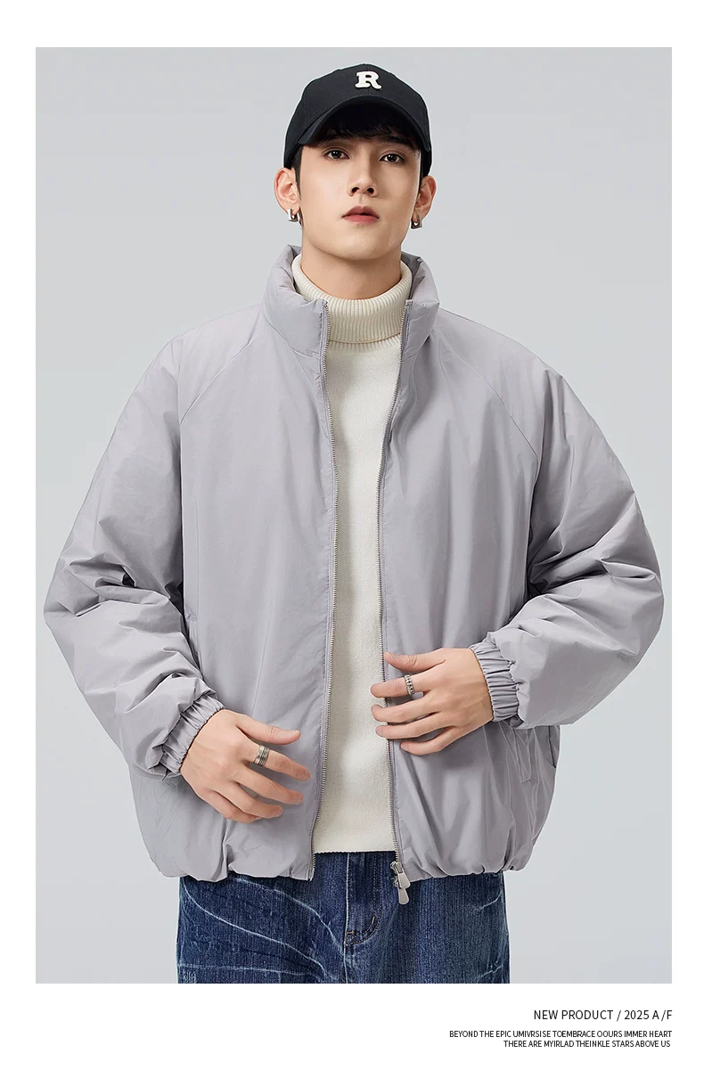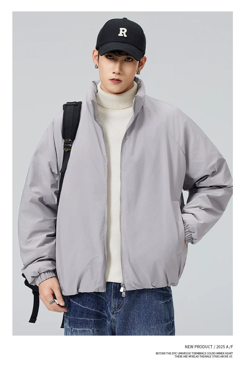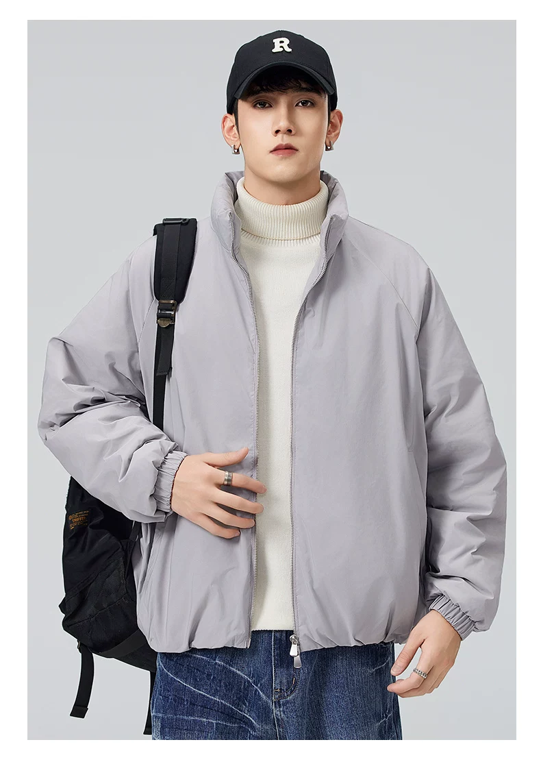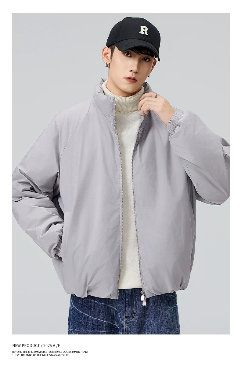 Áo khoác cổ đứng lông vũ trắng OMZM90 dành cho nam, áo khoác cotton dày dặn ấm áp mùa đông, áo khoác phao rộng rãi.