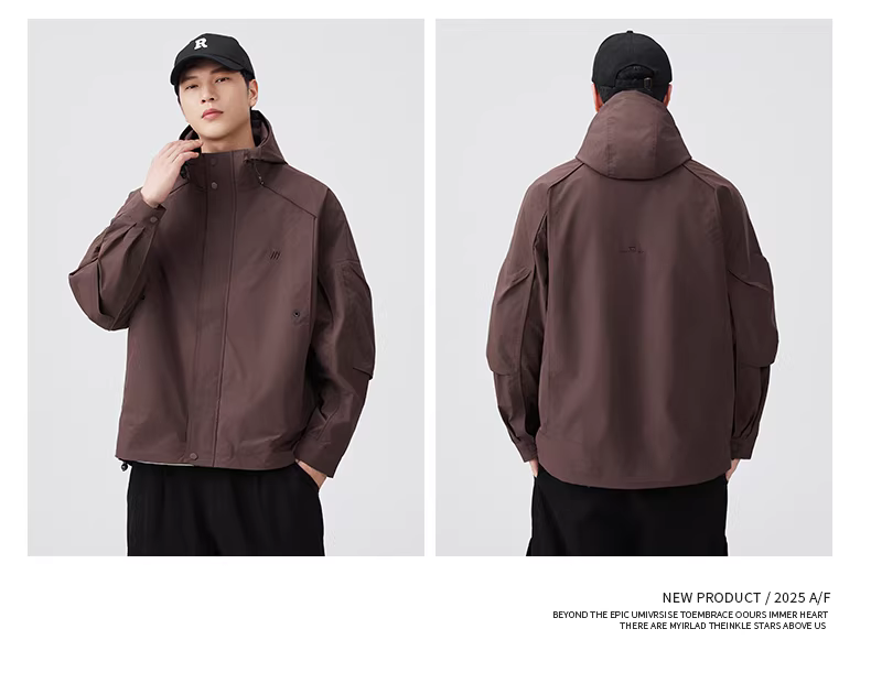 - Áo khoác có mũ trùm đầu chống thấm nước thuần túy dành cho nam giới cho mùa thu, áo khoác bảo hộ lao động chống nước ngoài trời hợp thời trang theo phong cách Mỹ, áo khoác đi bộ đường dài