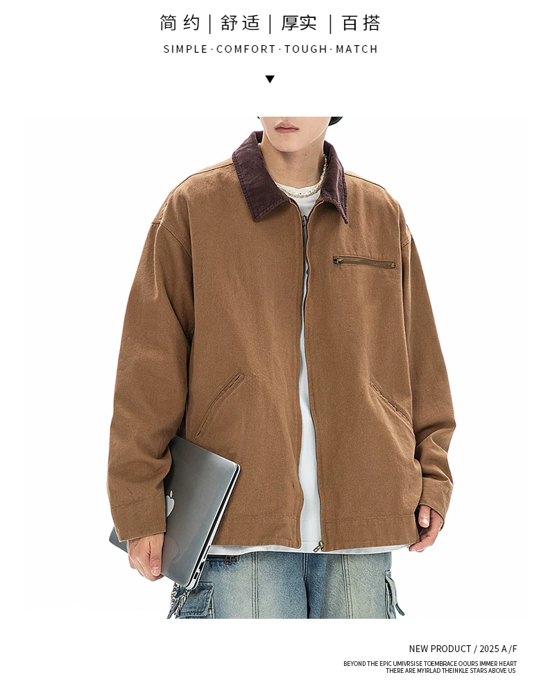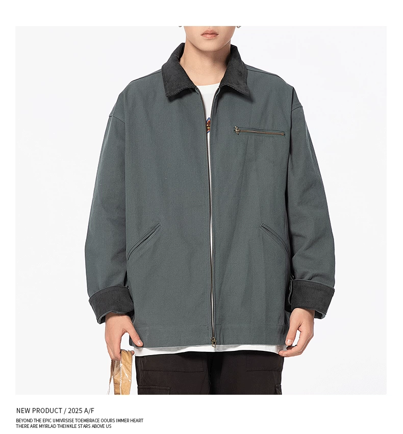 Áo khoác có ve áo kiểu Mỹ OMZM dành cho nam, áo khoác dày giữ ấm ngoài trời chống gió mùa thu đông, áo gió phối màu thông thường.