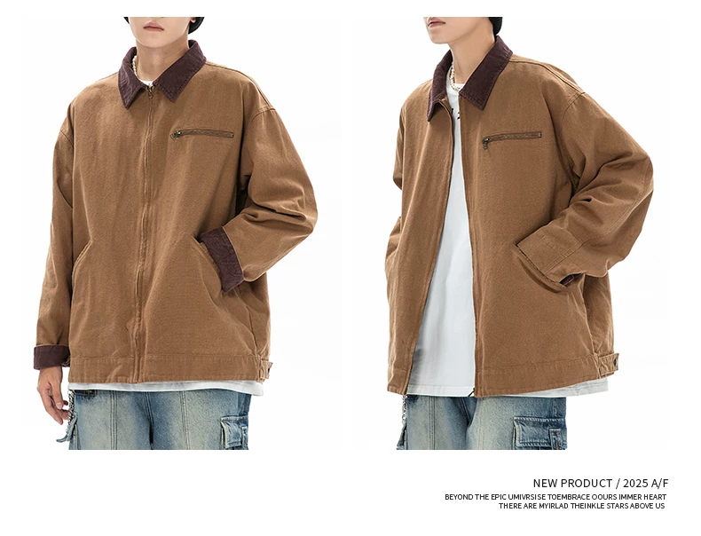 - Áo khoác có ve áo kiểu Mỹ OMZM dành cho nam, áo khoác dày giữ ấm ngoài trời chống gió mùa thu đông, áo gió phối màu thông thường.