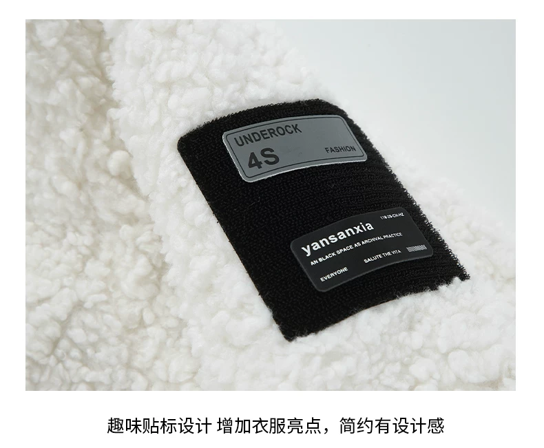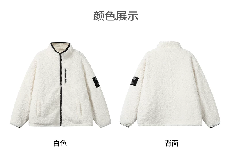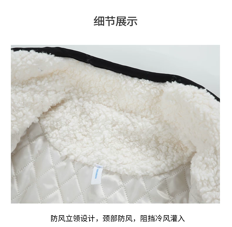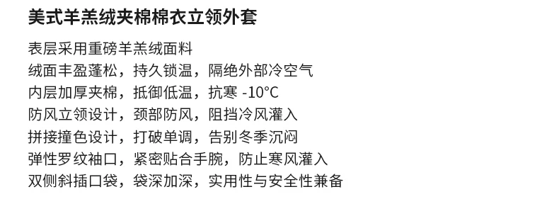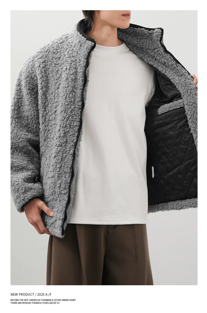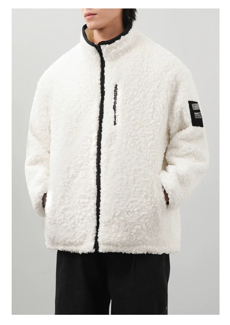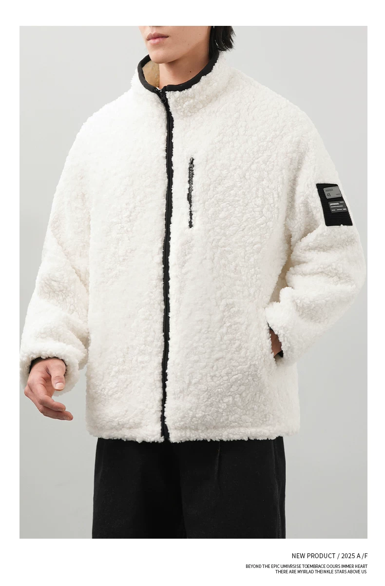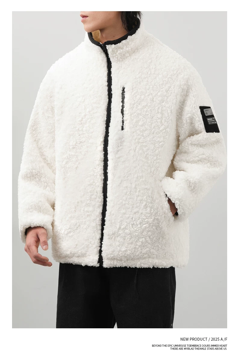 - Áo khoác cotton cổ đứng kiểu Mỹ OMZM dành cho nam, áo khoác cotton dày dặn lót lông cừu mùa đông, áo khoác len cừu trắng.