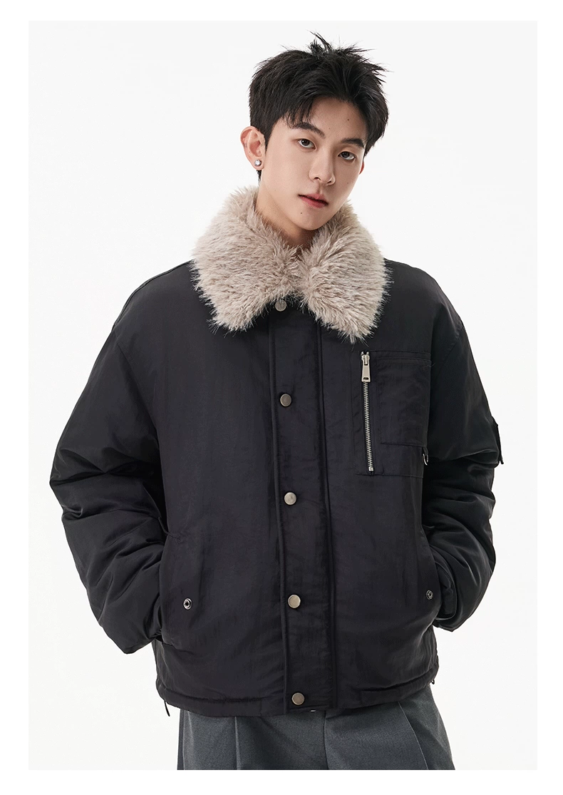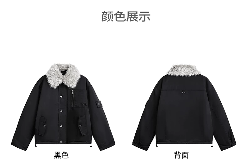 - Áo khoác cotton kiểu Mỹ OMZM dành cho nam, áo khoác cotton dày dặn chống nhăn cổ điển mùa đông, dáng rộng có cổ lông.