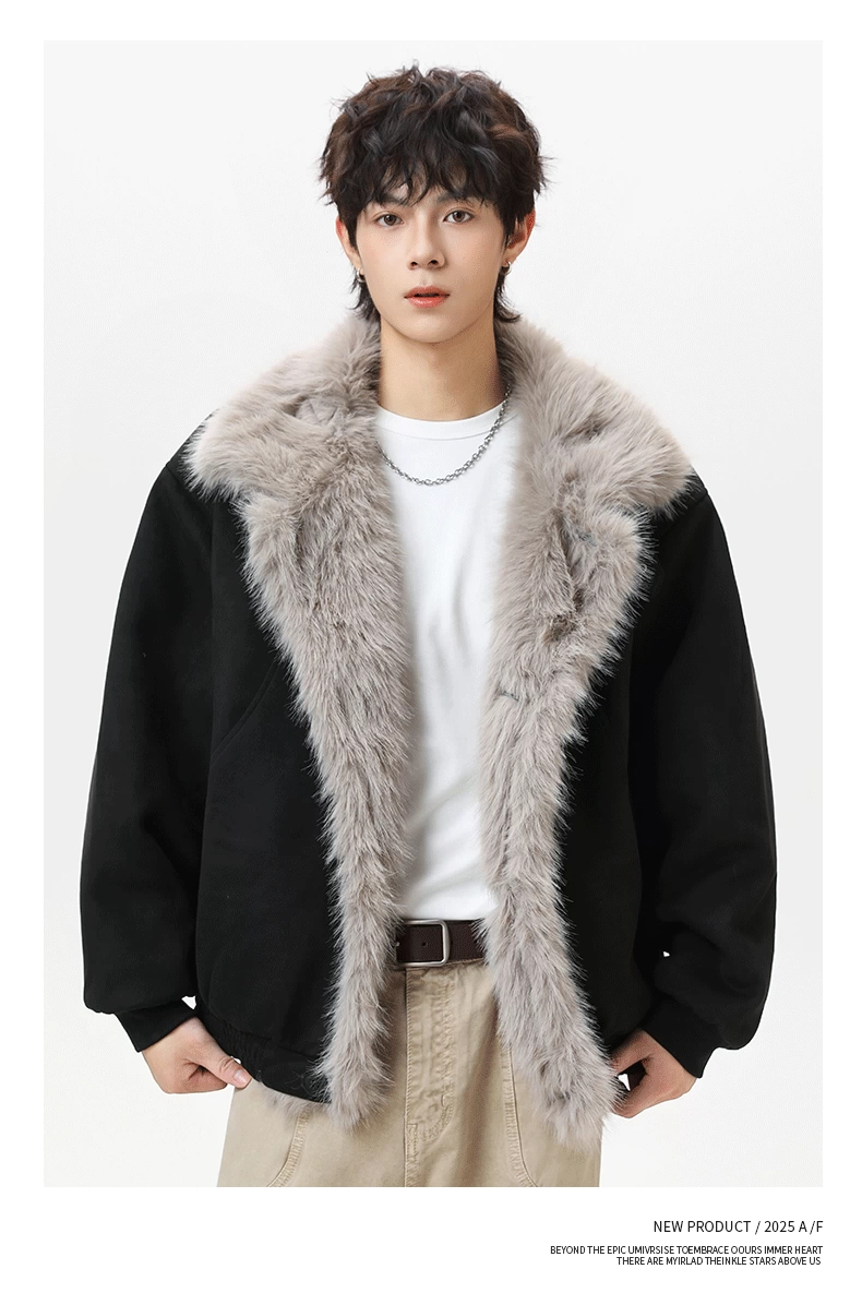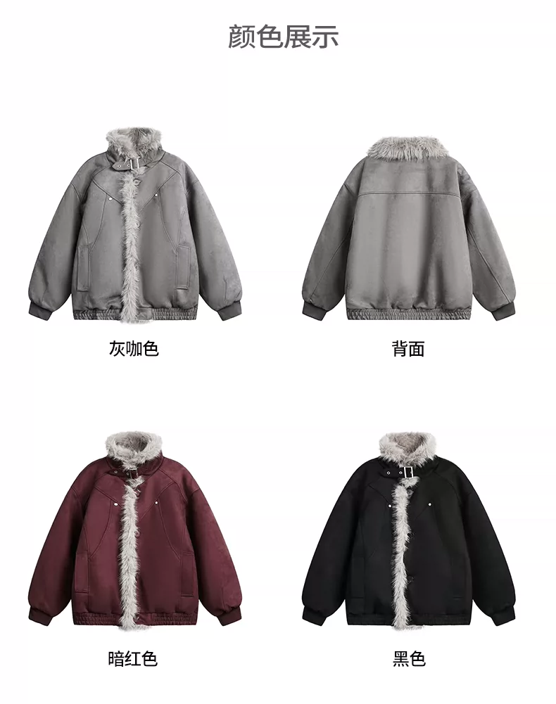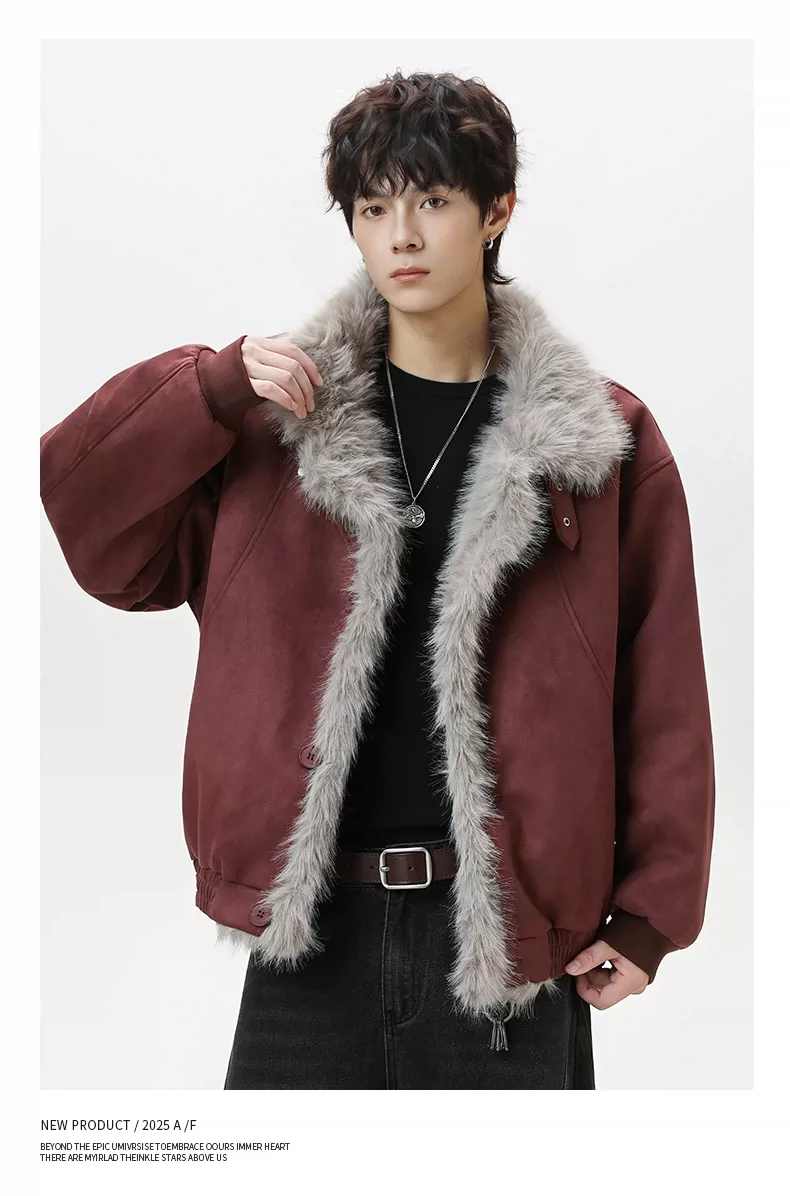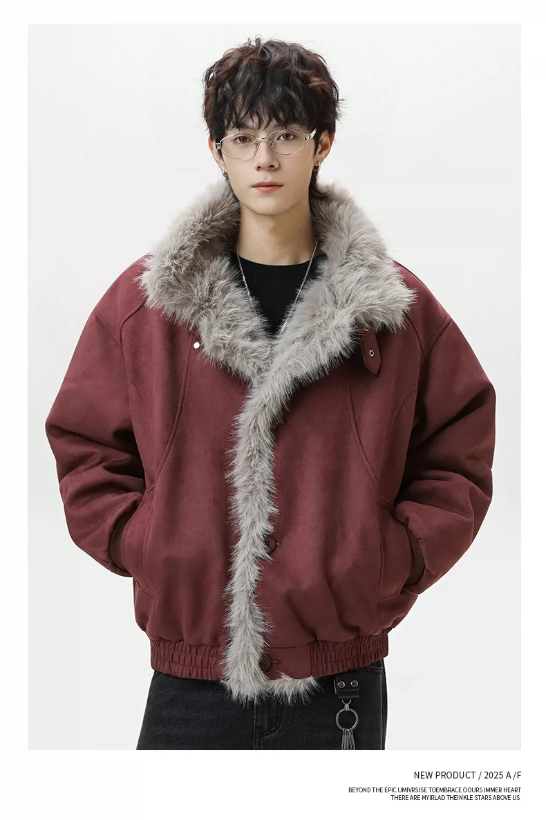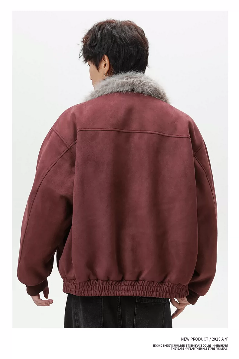 Áo khoác cotton lót bông mùa đông dành cho nam OMZM có lớp lót lông cừu, dày dặn để giữ ấm, áo khoác da lộn kiểu dáng sạch sẽ kiểu Mỹ