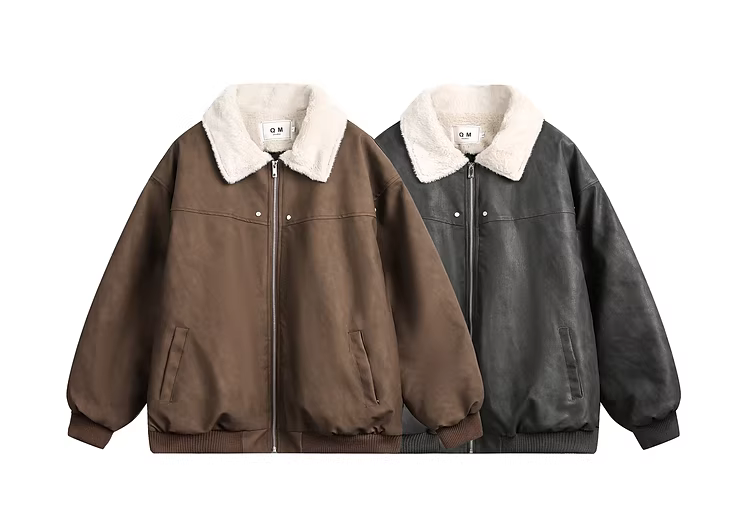 - Áo khoác da phối len cừu cổ điển mùa đông của Wukong dành cho nam, thương hiệu thời thượng, dáng rộng, ấm áp và đa năng.