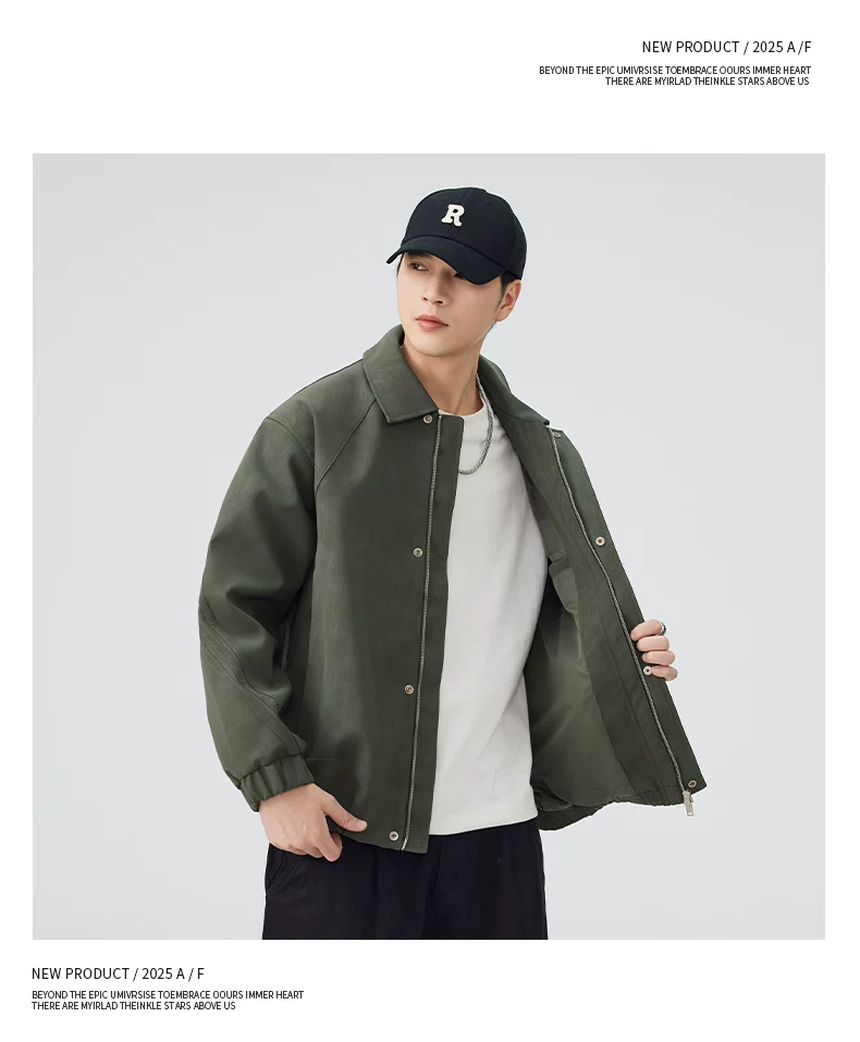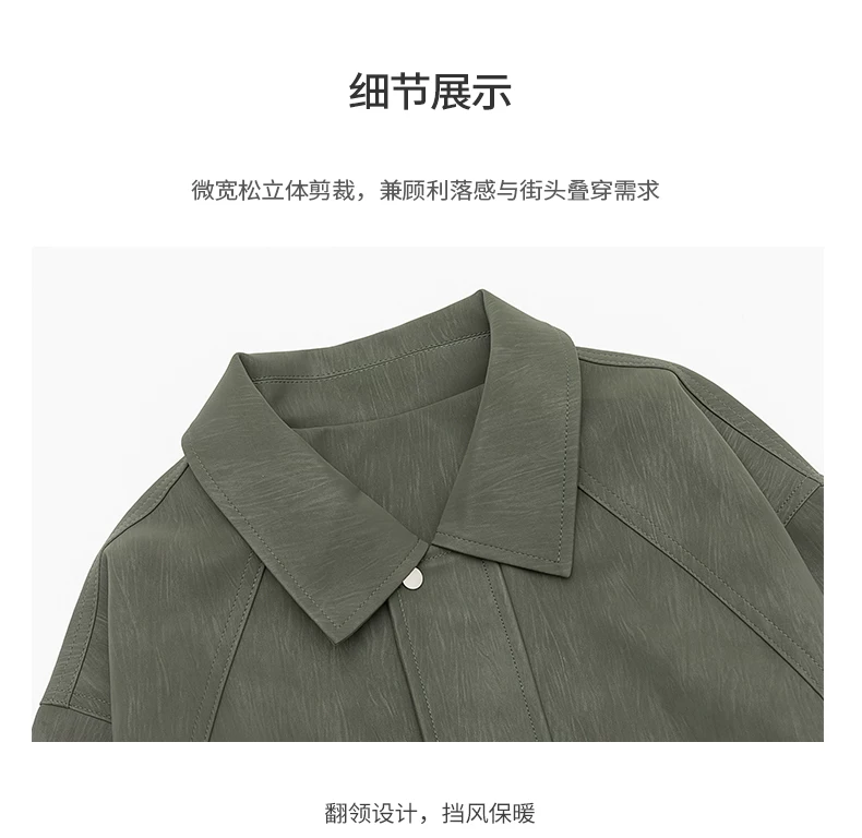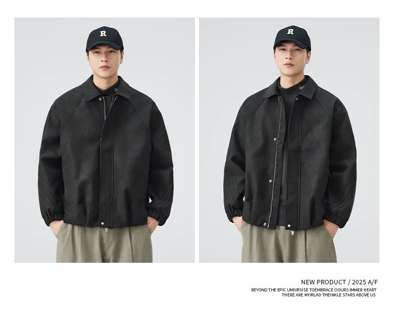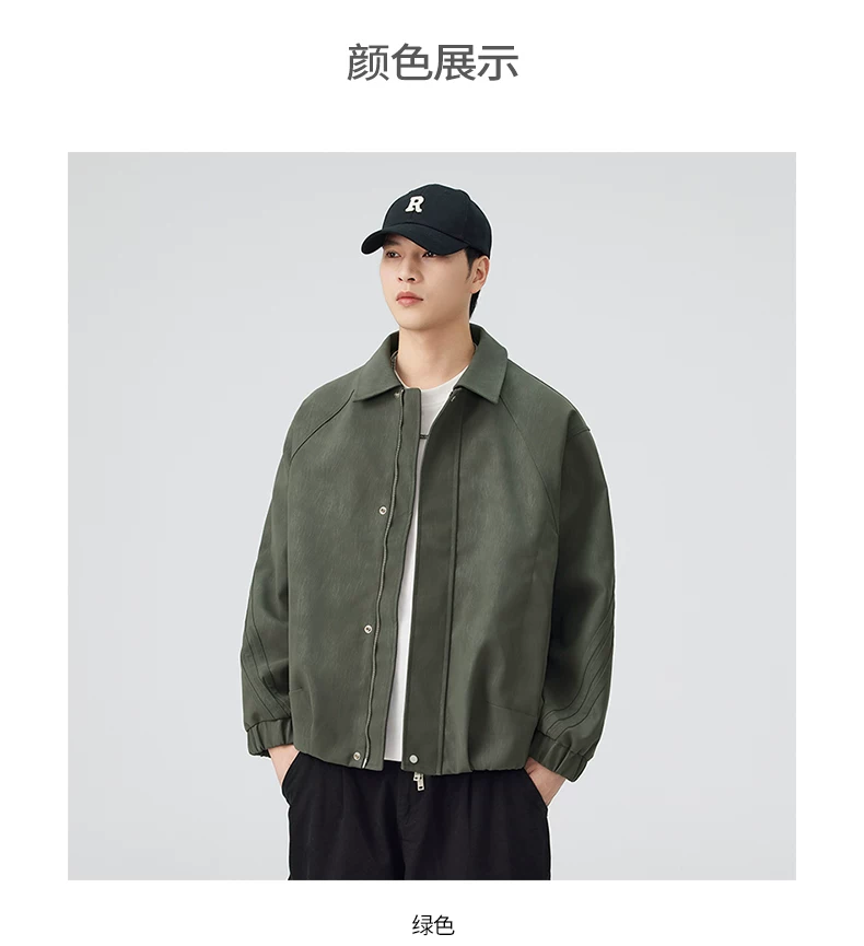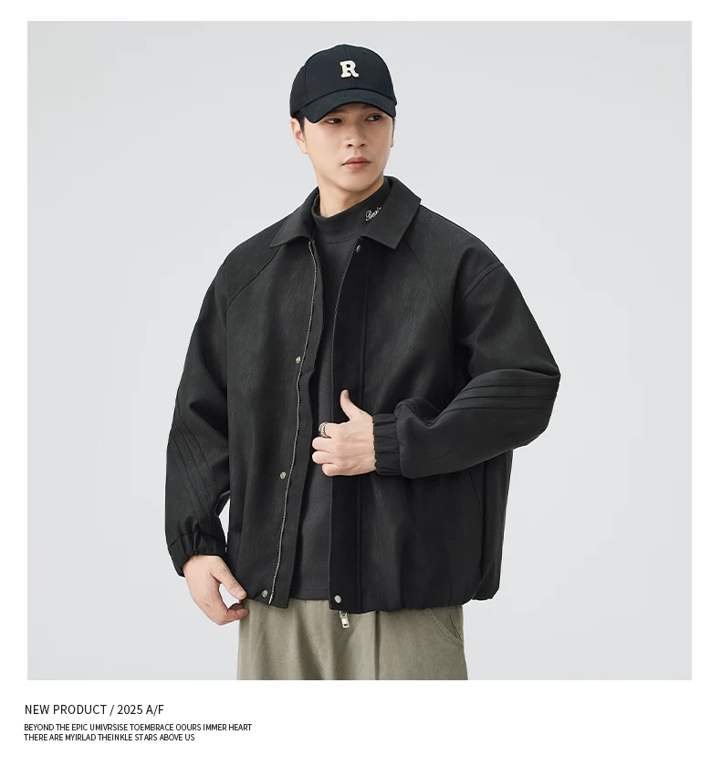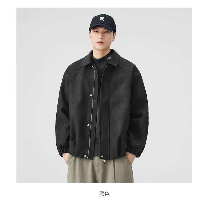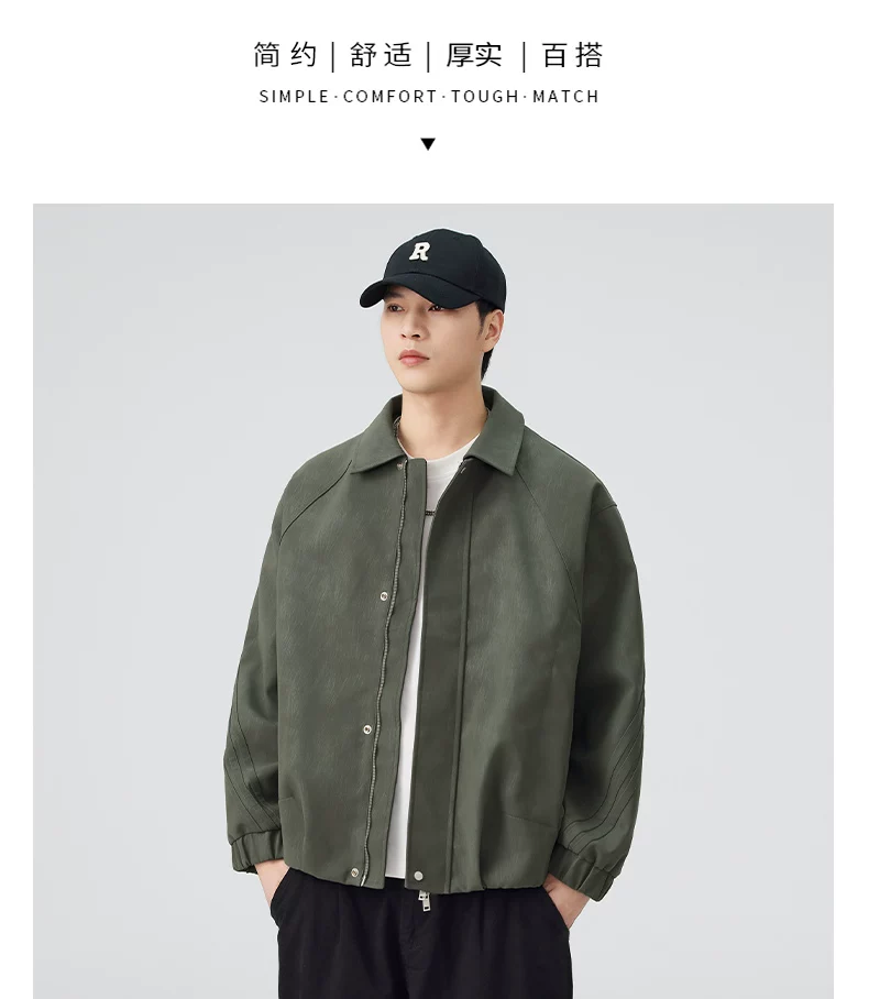 - Áo khoác da PU kiểu Mỹ OMZM dành cho nam, áo khoác cơ bản cổ điển cao cấp mùa thu, áo khoác công sở dáng rộng có ve áo