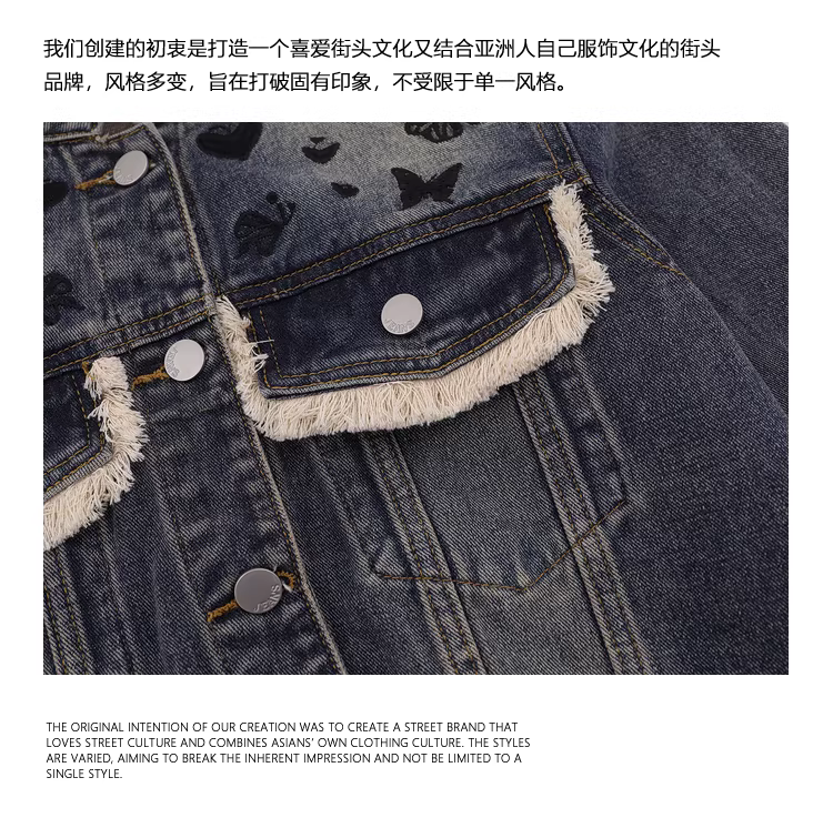 - Áo khoác denim dáng rộng kiểu Hong Kong thêu họa tiết retro phong cách Mars Night Butterfly mới