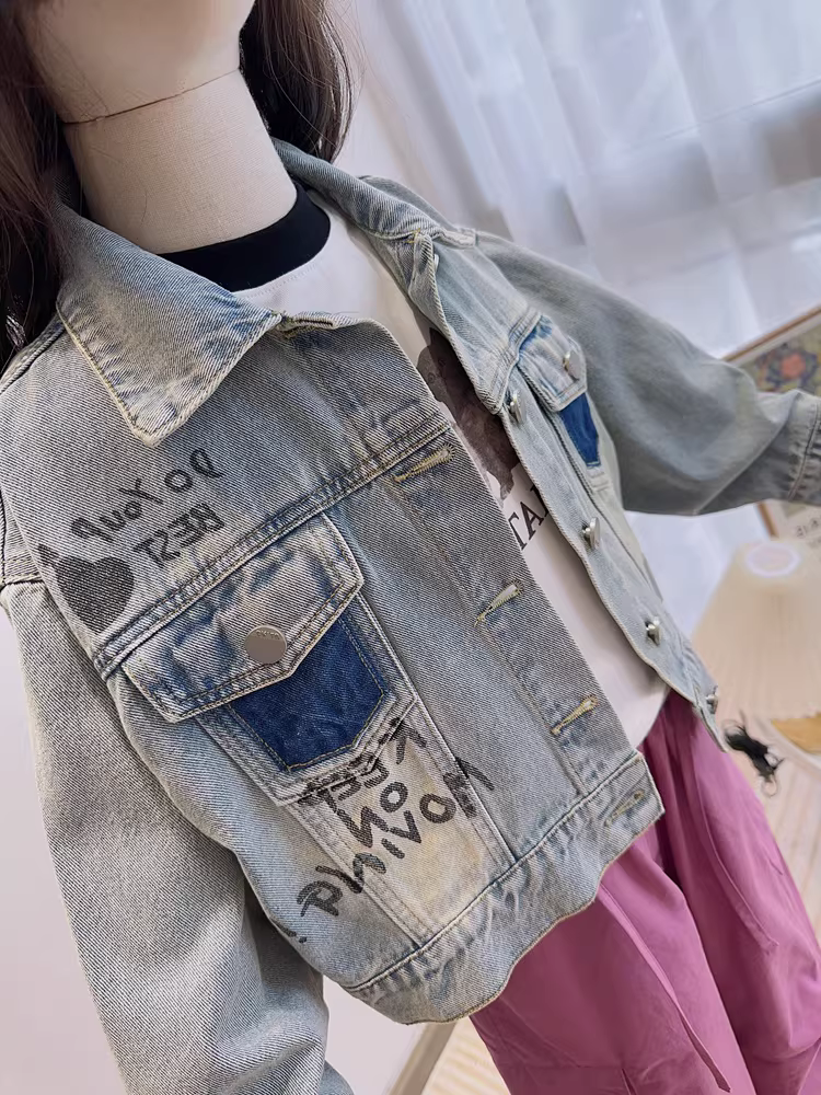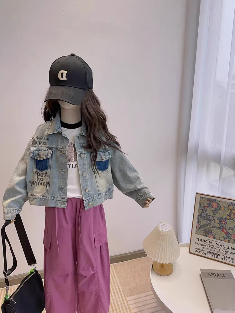 - Áo khoác denim ngắn kiểu Hàn Quốc mùa xuân mới 2025 dành cho bé gái lớn, kiểu dáng nhỏ nhắn, thời trang, đẹp mắt