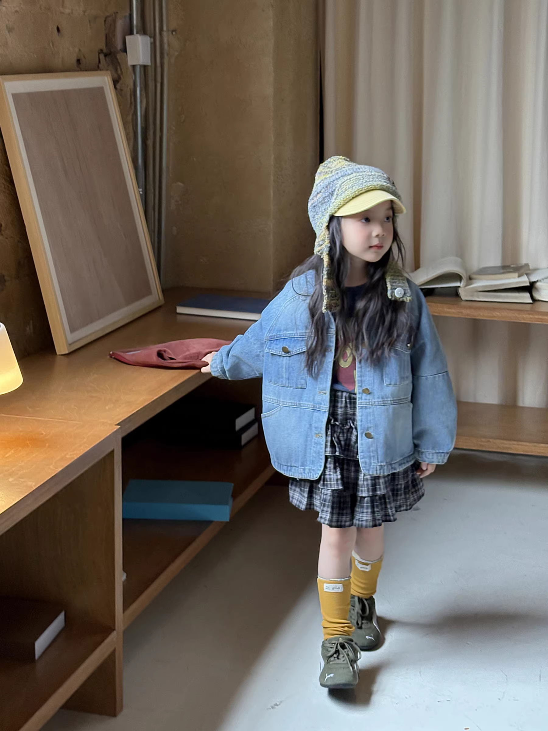 - Áo khoác denim nữ, đa năng và thời trang cho mùa thu, quần áo trẻ em đã qua xử lý, dáng rộng, cổ đứng, áo khoác ngoài, tay dài.