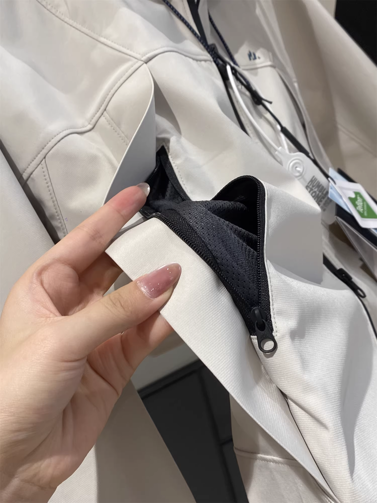 两侧都是有口袋的,而且非常的隐形全部压胶防水