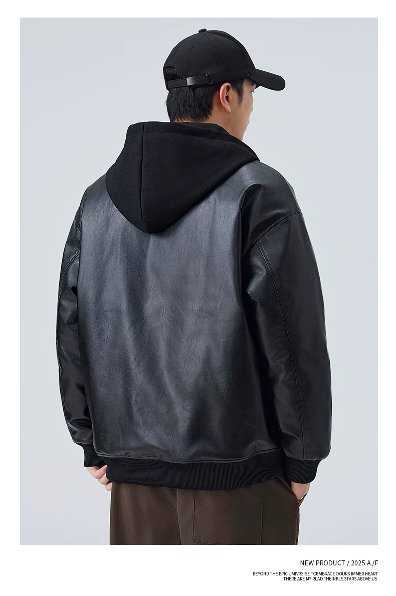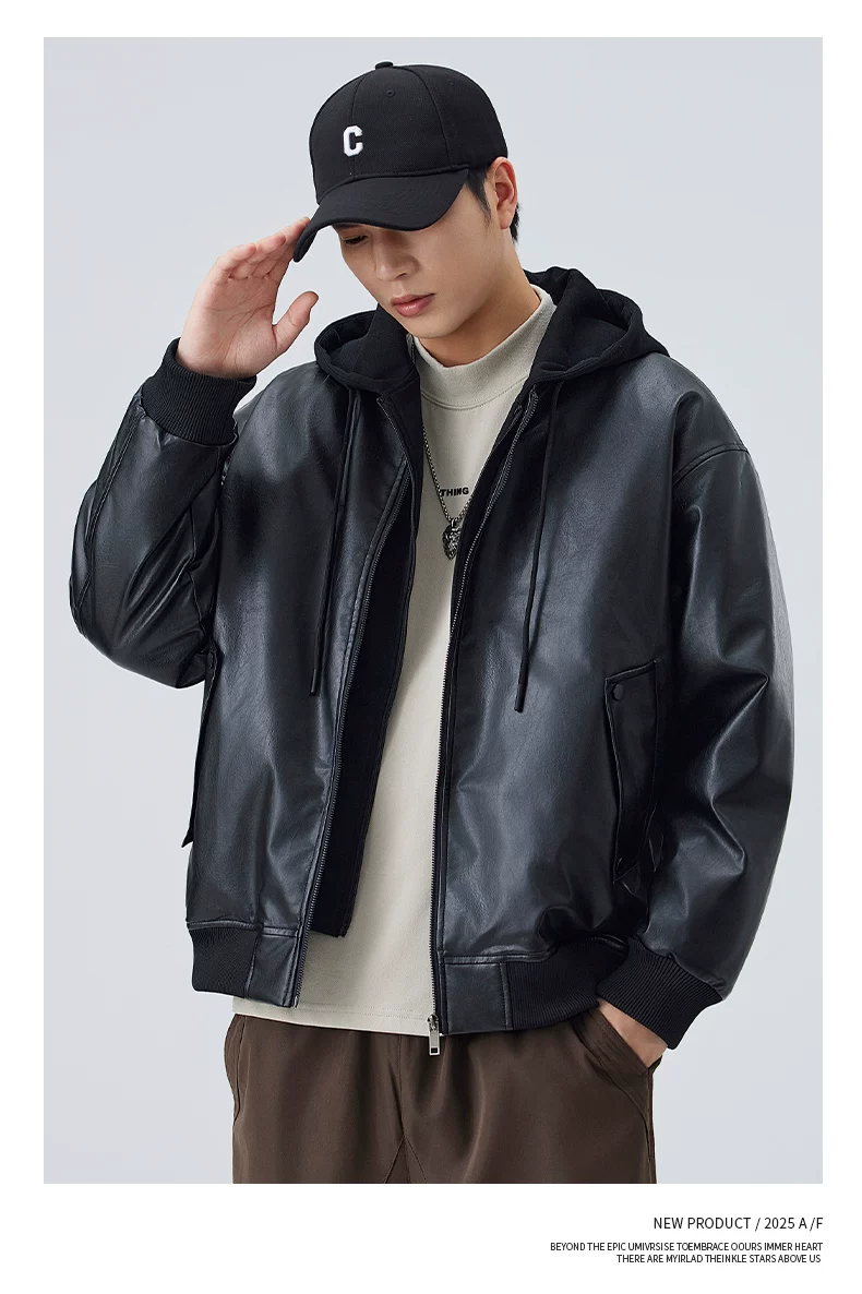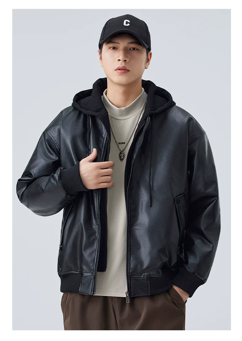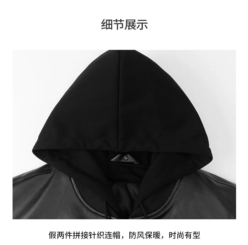 - Áo khoác giả hai mảnh mới của OMZM dành cho nam giới, áo khoác dày dặn ấm áp theo phong cách cổ điển mùa đông, áo khoác da có mũ trùm đầu dành cho cặp đôi phong cách biker