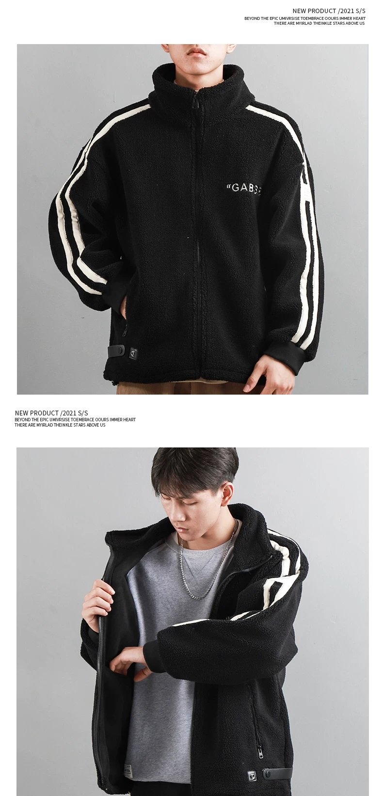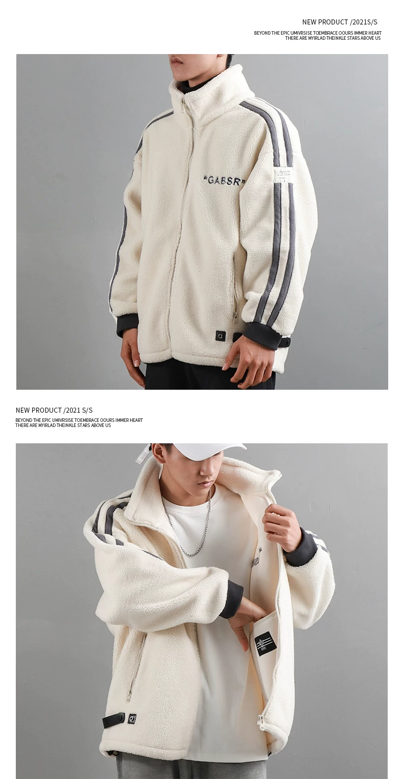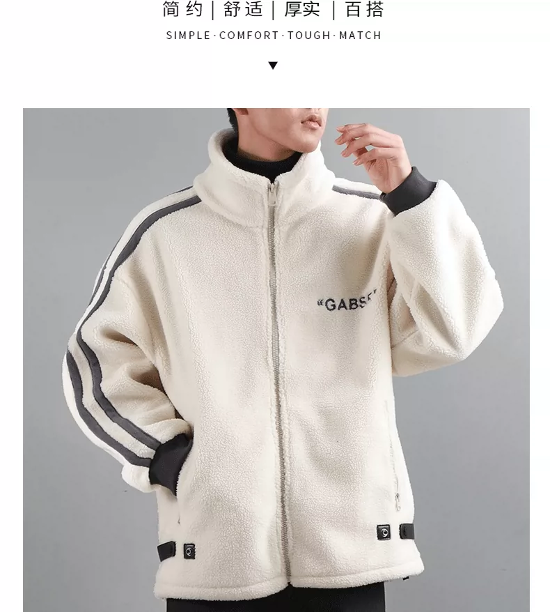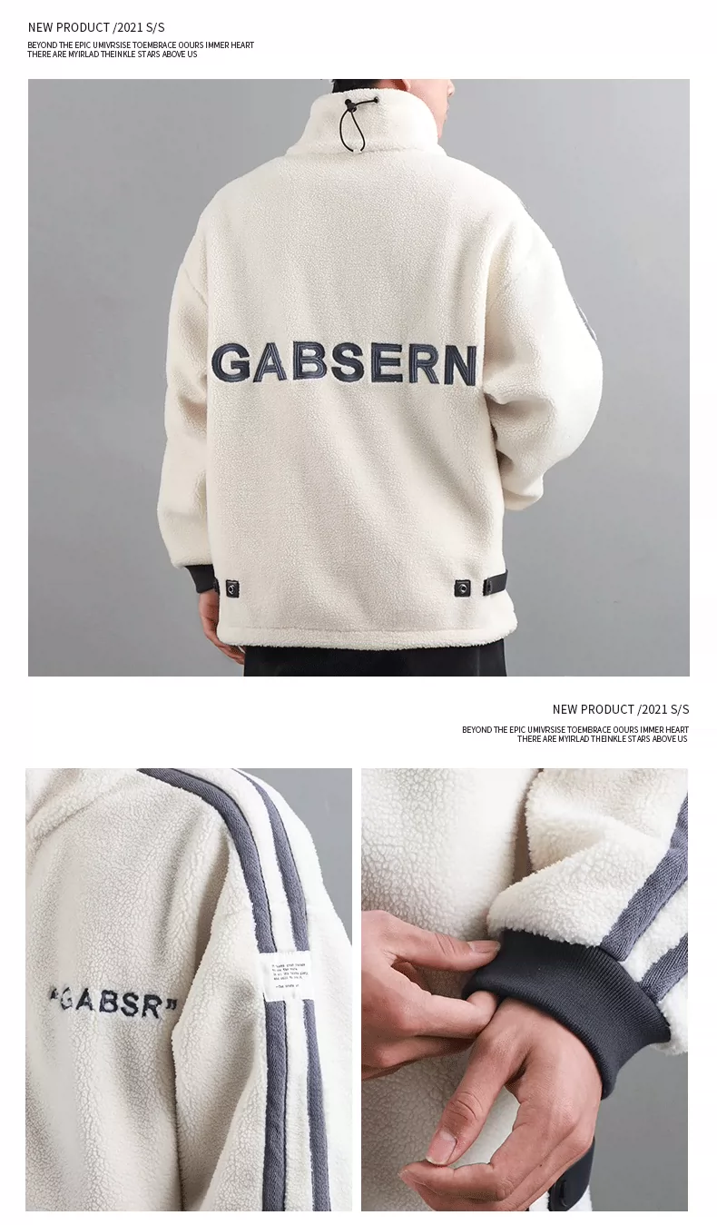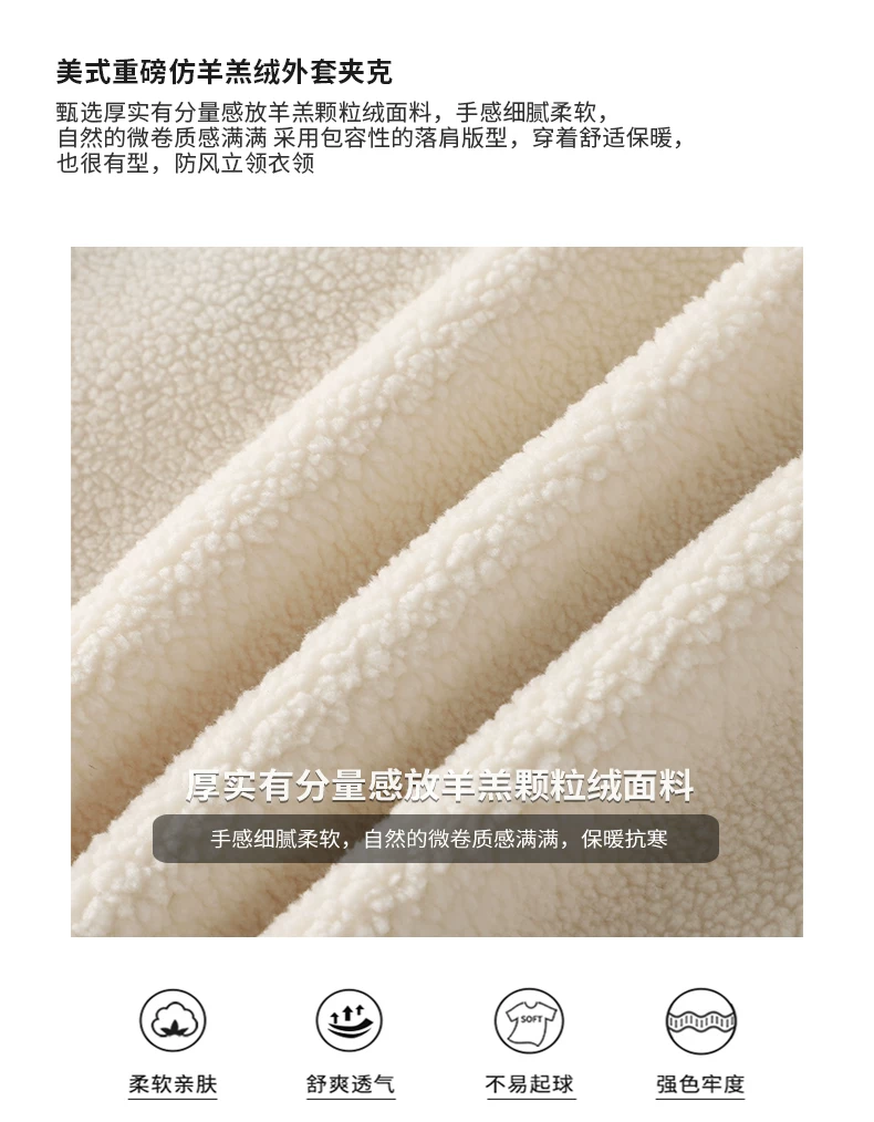 - Áo khoác giả lông cừu dày 480G kiểu Mỹ dành cho nam, áo khoác dày lót lông cừu mùa đông, áo cổ đứng giữ ấm bằng lông cừu