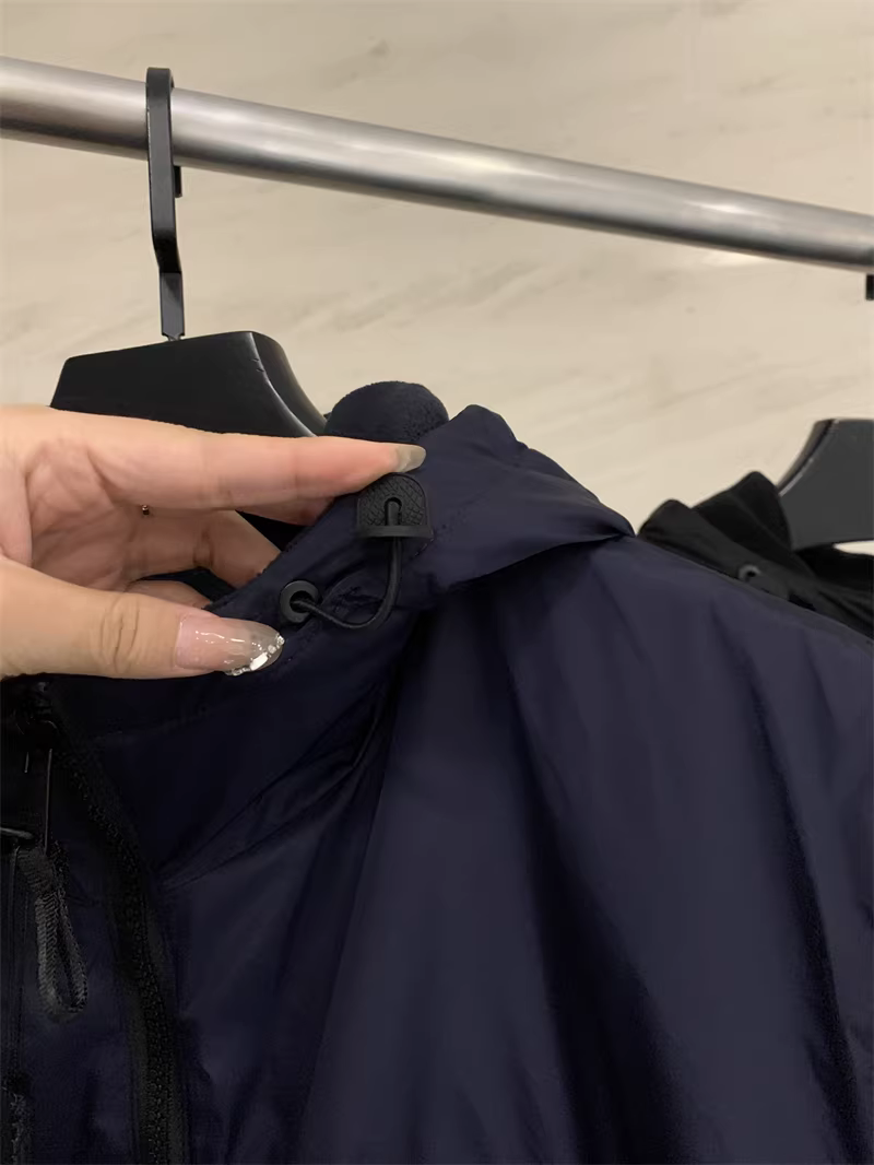 一体式连帽设计 两侧抽绳弹簧卡扣 松紧调节 随心所欲!