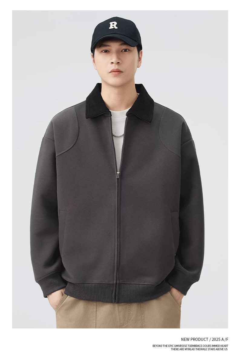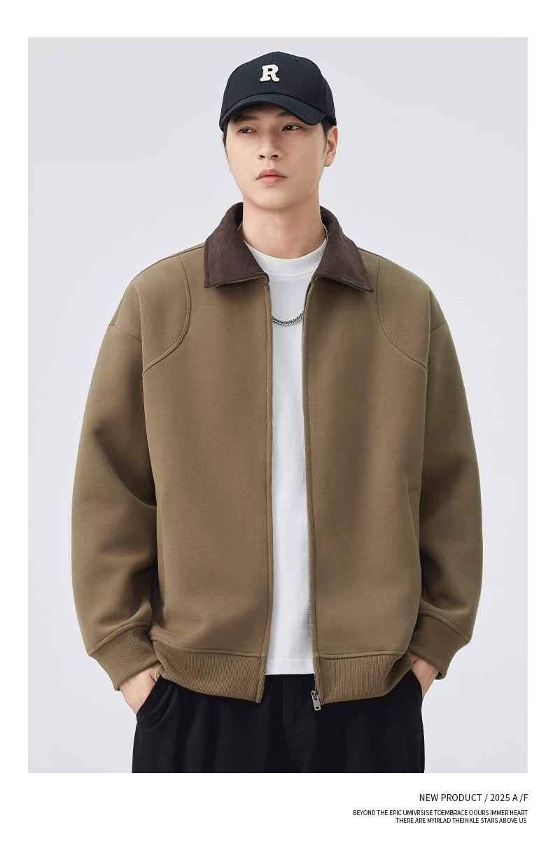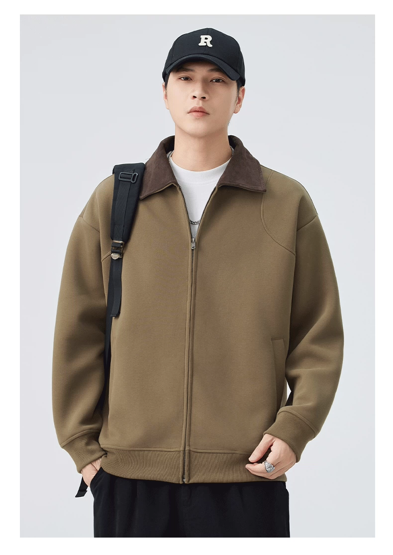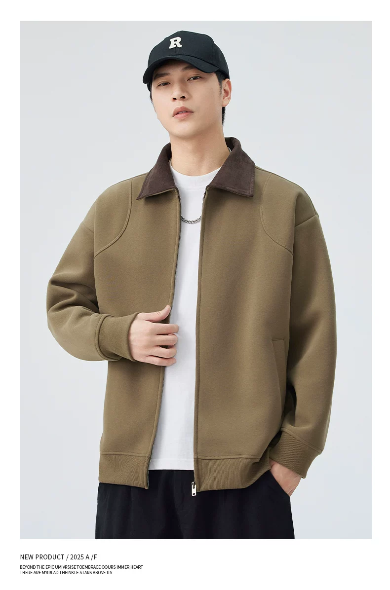 - Áo khoác hạng nặng OMZM dành cho nam, mùa thu đông, áo len cardigan hạng nặng 420G, áo khoác công sở dáng rộng cổ điển kiểu Mỹ