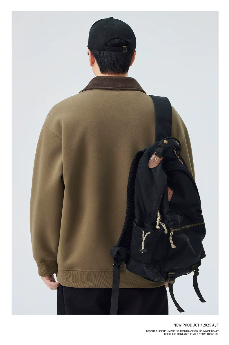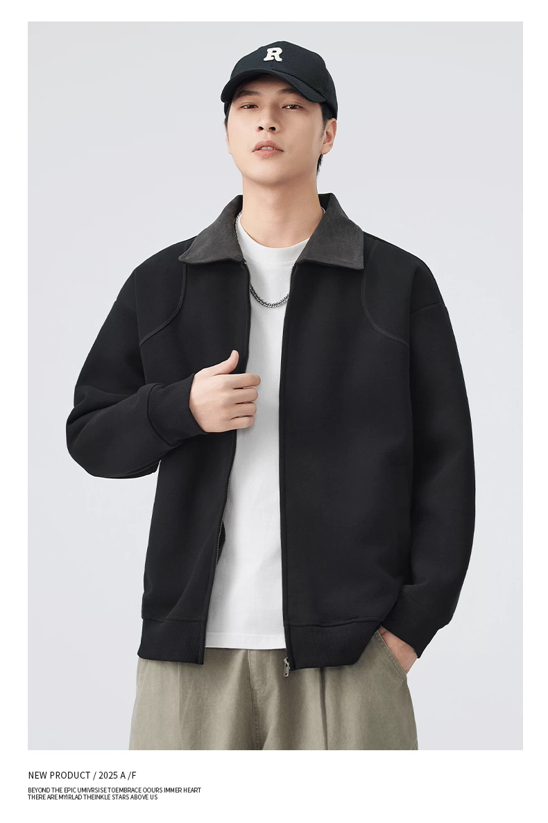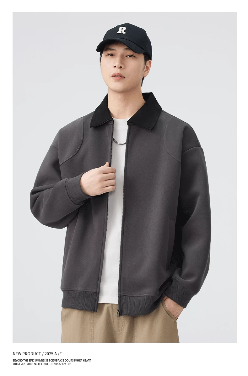 - Áo khoác hạng nặng OMZM dành cho nam, mùa thu đông, áo len cardigan hạng nặng 420G, áo khoác công sở dáng rộng cổ điển kiểu Mỹ