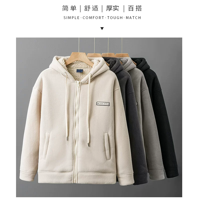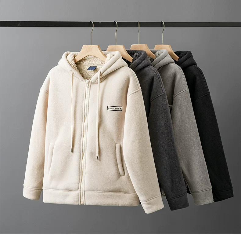 - Áo khoác len cừu nặng 550G dành cho nam, áo khoác nỉ giữ ấm mùa đông, áo khoác cardigan có mũ dày dặn
