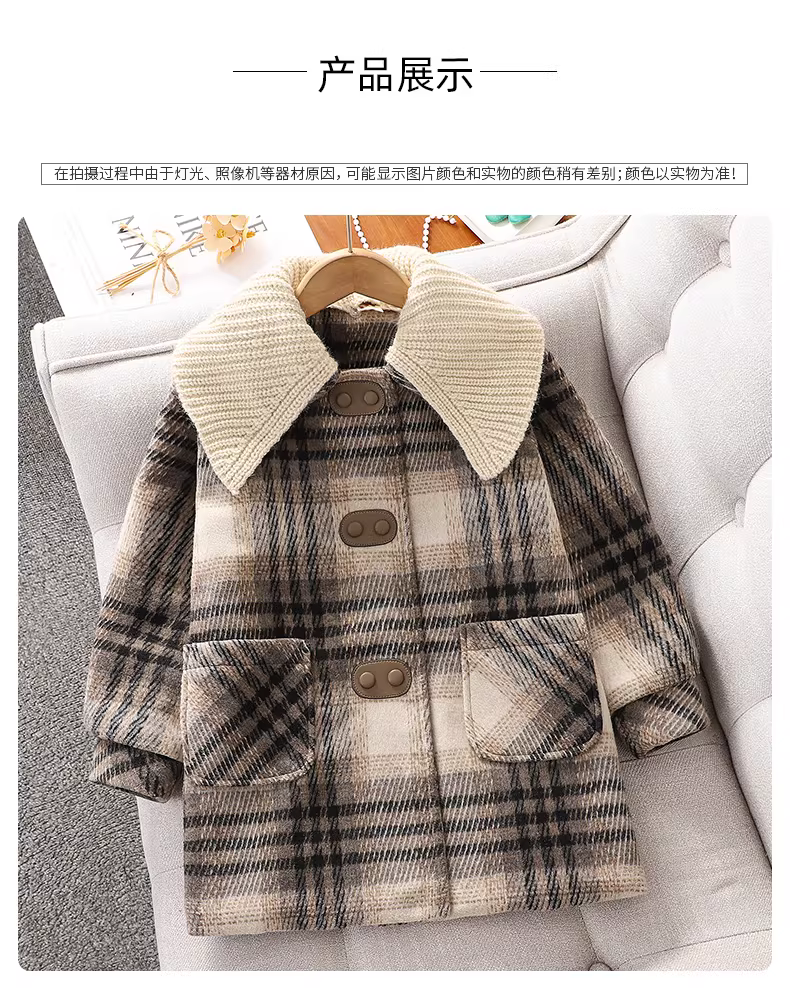 - Áo khoác len thu đông cho bé gái, kiểu mới 2025, áo khoác len dày dặn, áo khoác dài trung bình cho bé gái lớn hơn.