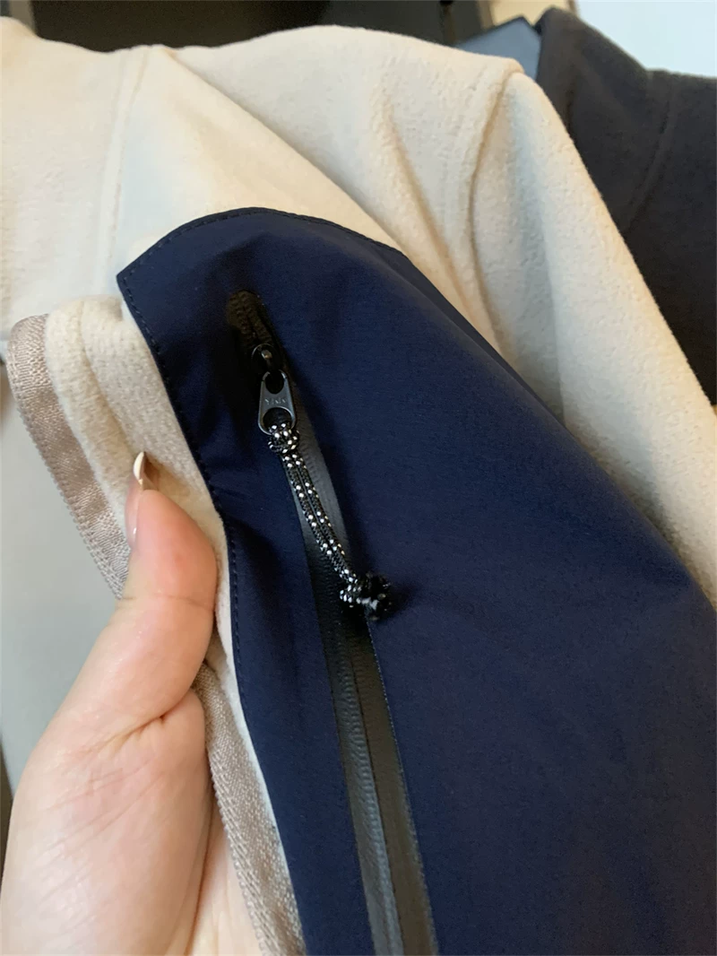 袖口 下摆 口袋处精美的拼色包边