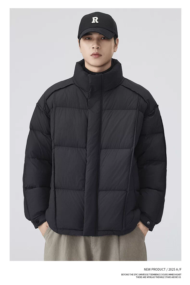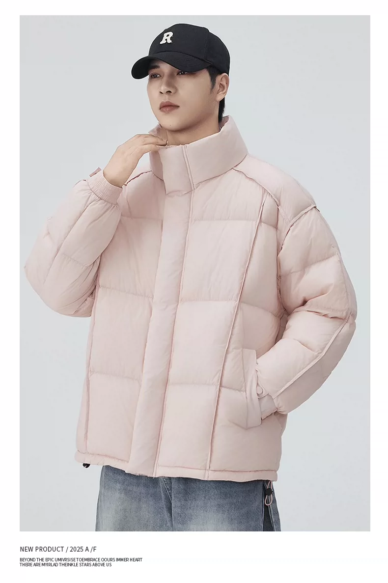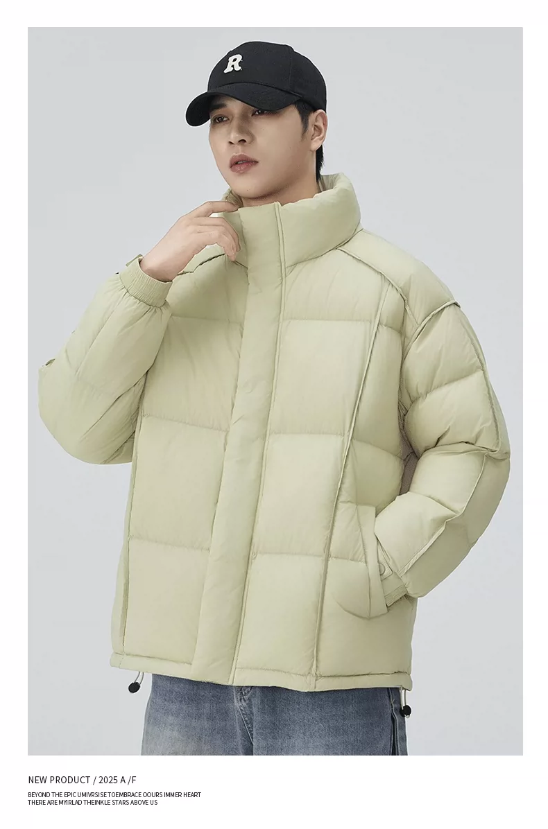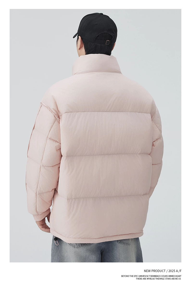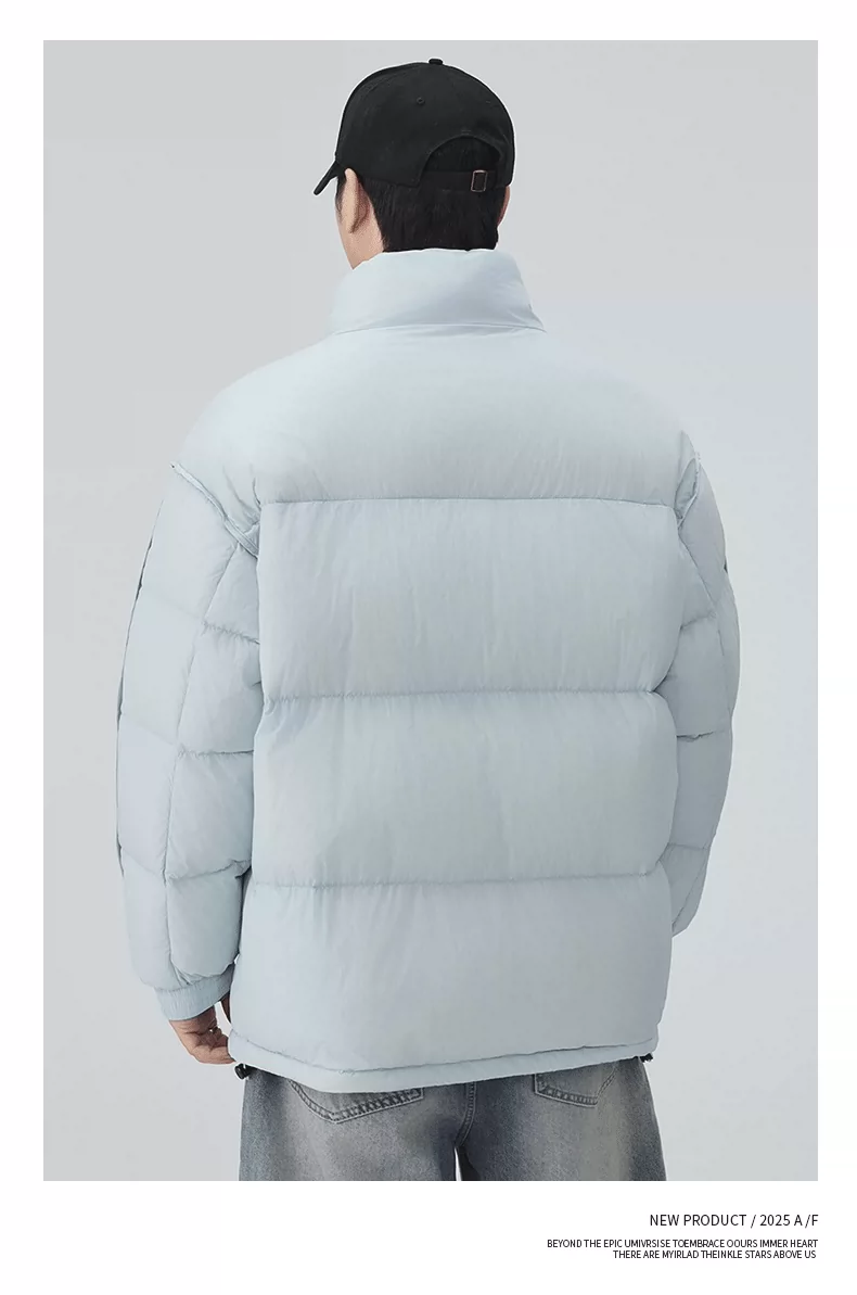- Áo khoác lông vịt OMZM Dopamine dành cho nam, phong cách mùa đông kiểu Mỹ, lót lông cừu, áo khoác cổ đứng dày, màu trơn, áo khoác phao ấm áp.