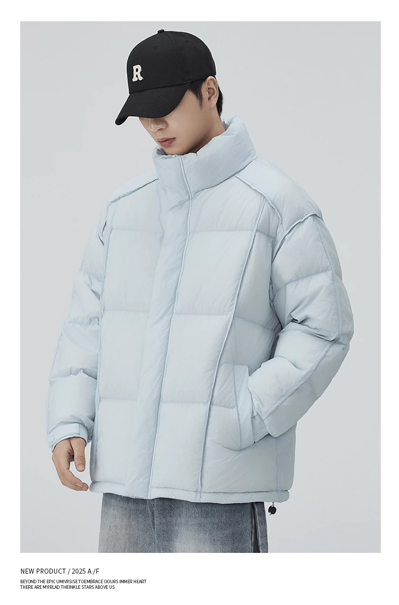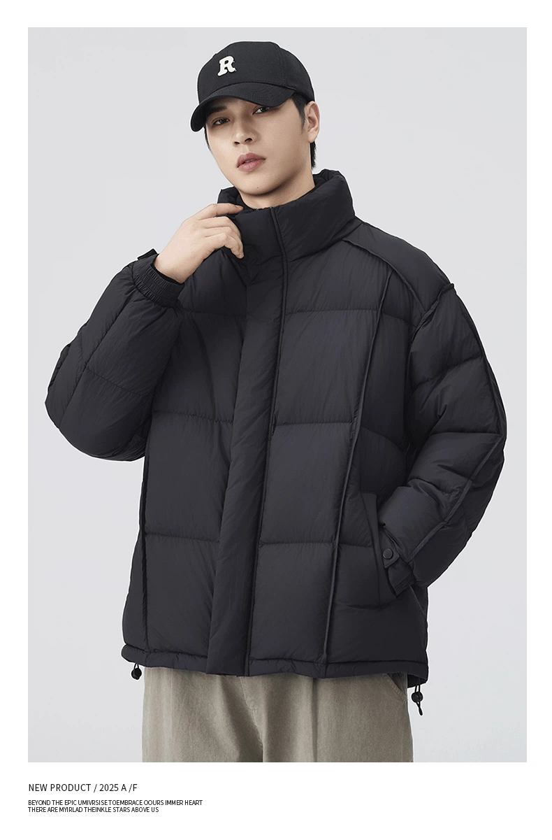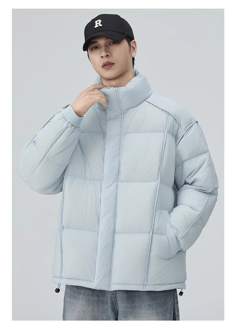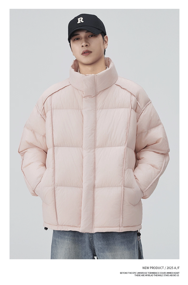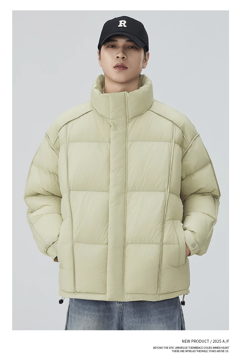 - Áo khoác lông vịt OMZM Dopamine dành cho nam, phong cách mùa đông kiểu Mỹ, lót lông cừu, áo khoác cổ đứng dày, màu trơn, áo khoác phao ấm áp.