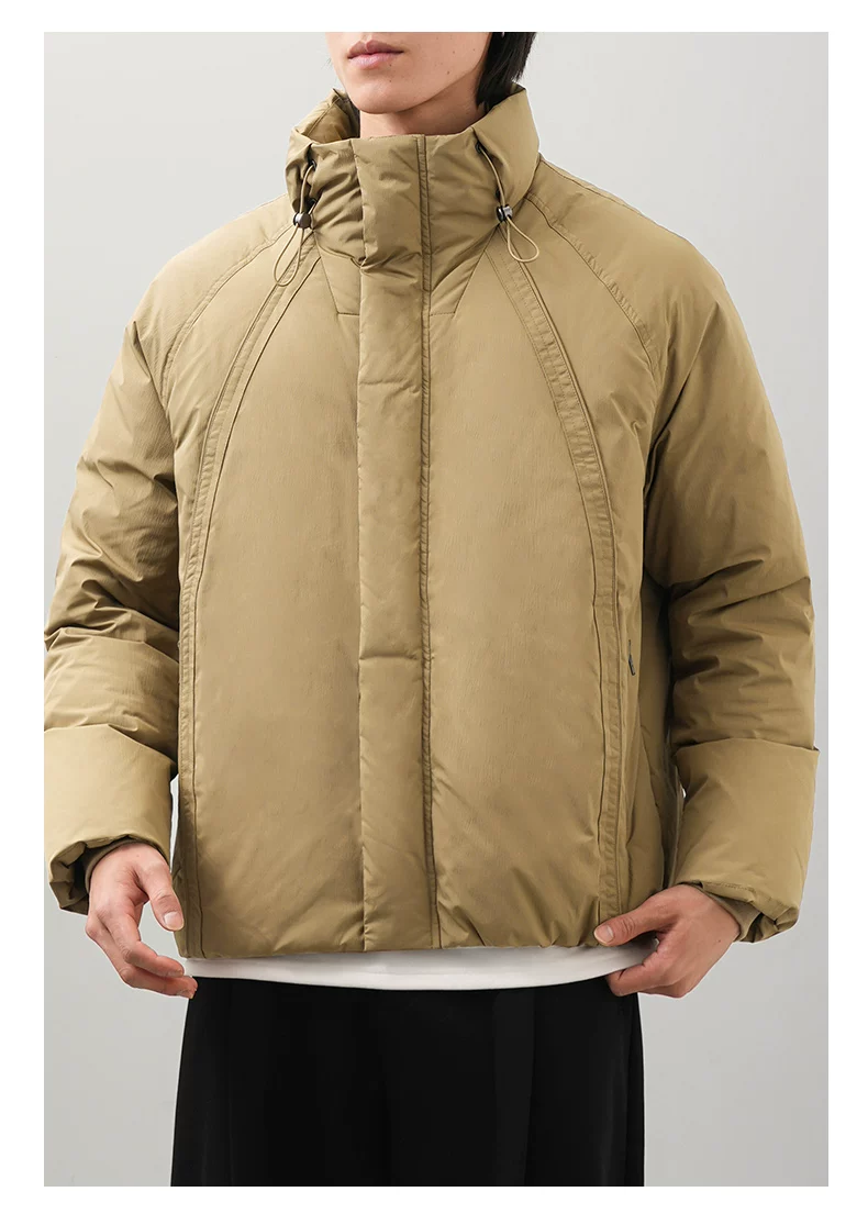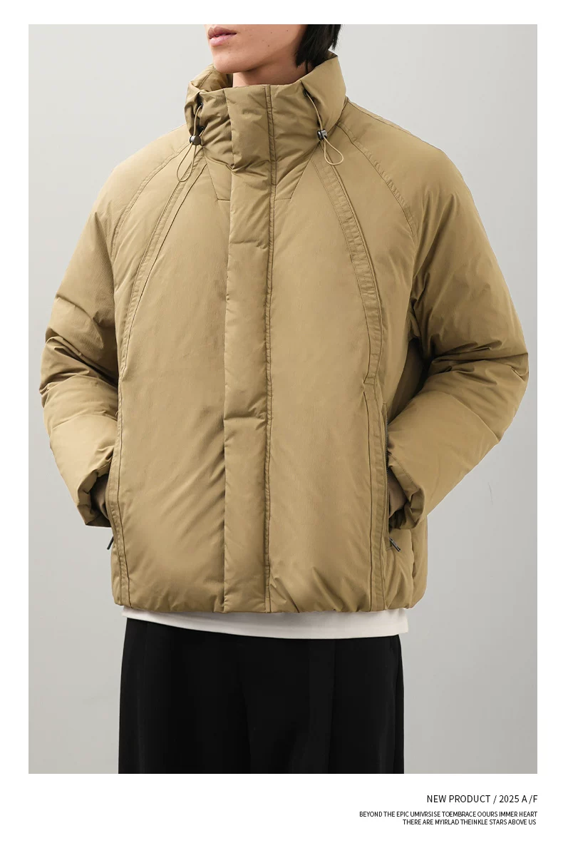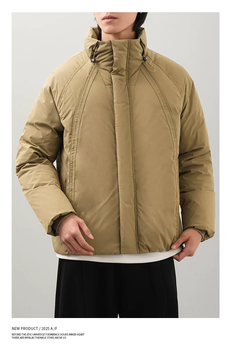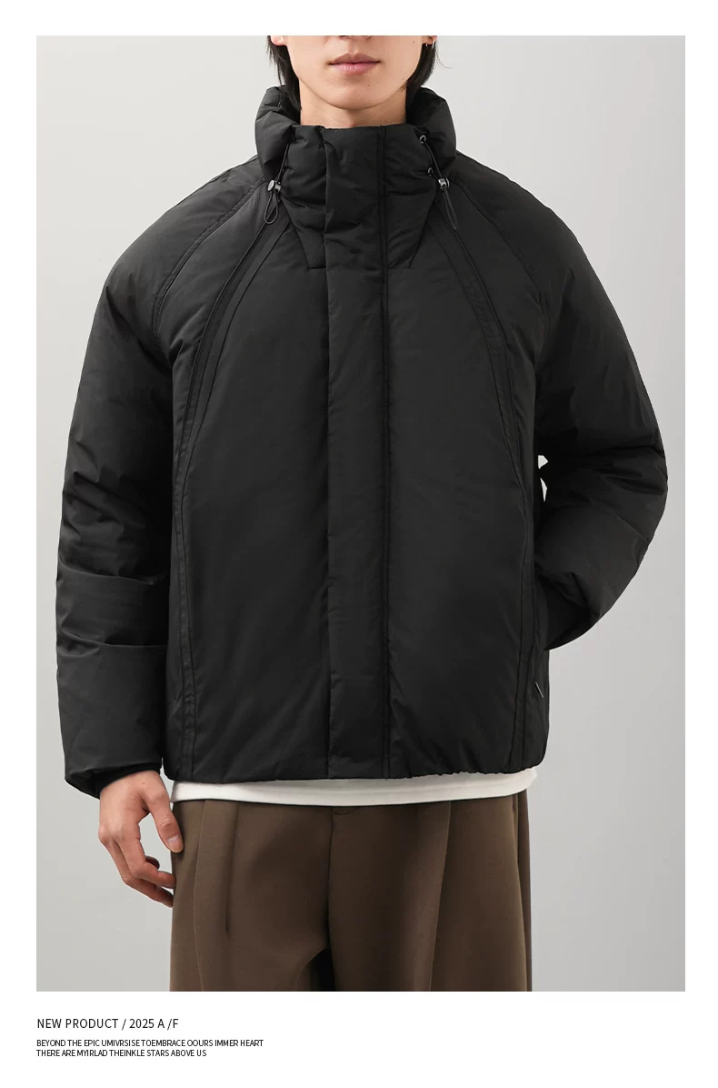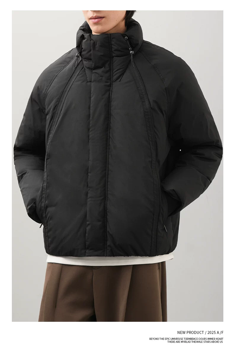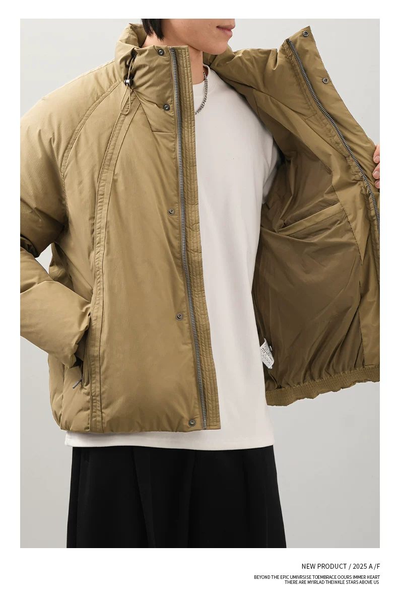 Áo khoác lông vịt OMZM90 dành cho nam, giữ ấm mùa đông và chống lạnh, áo khoác ngắn tối giản, dáng nhẹ, cổ đứng, áo khoác đôi.