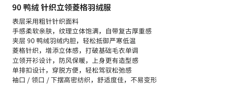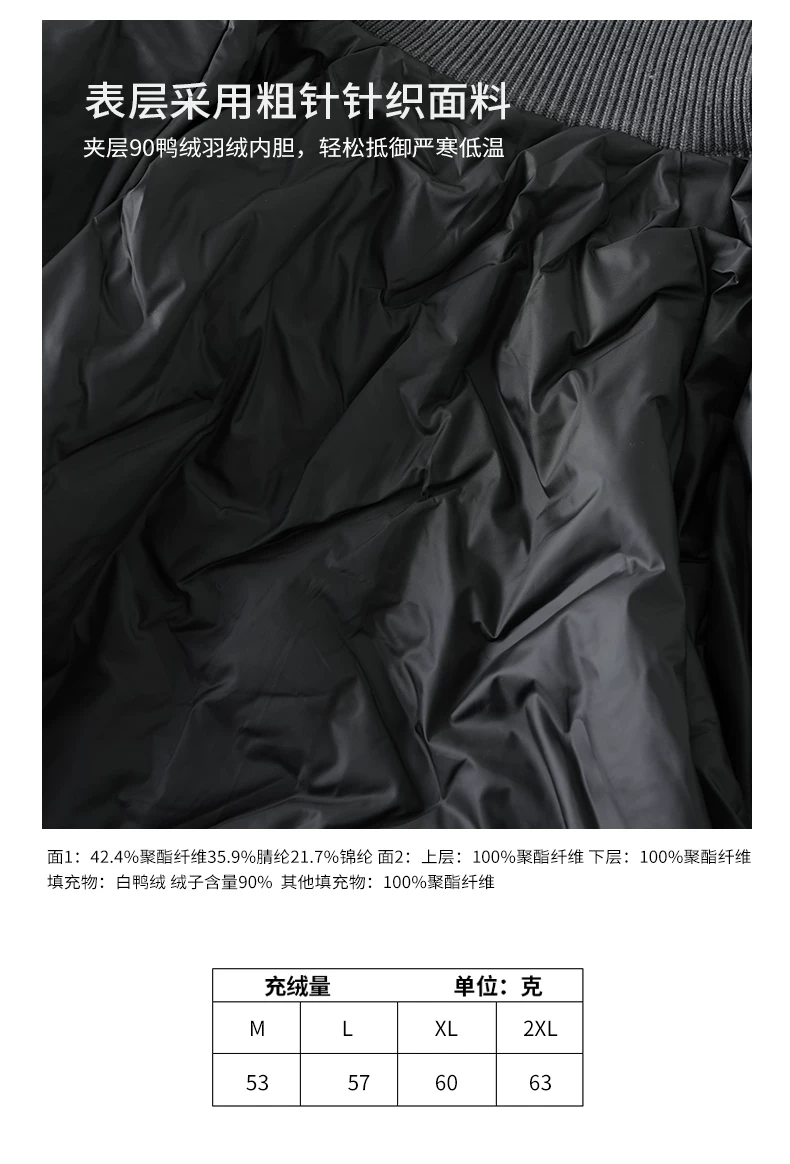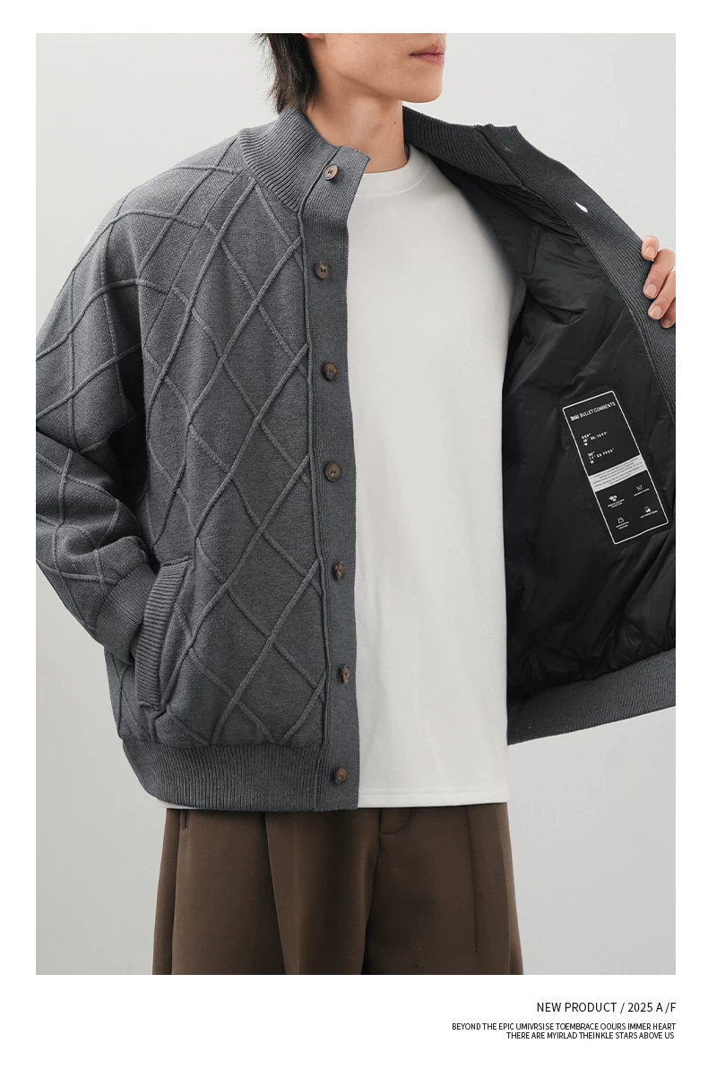 Áo khoác lông vũ có họa tiết chần bông OMZM90 dành cho nam, áo len dày cổ đứng kiểu Mỹ mùa đông, áo khoác cổ điển kiểu Mỹ.