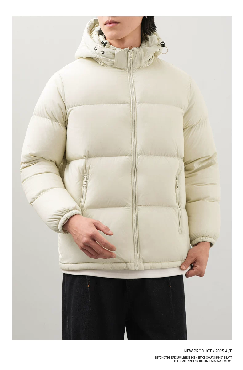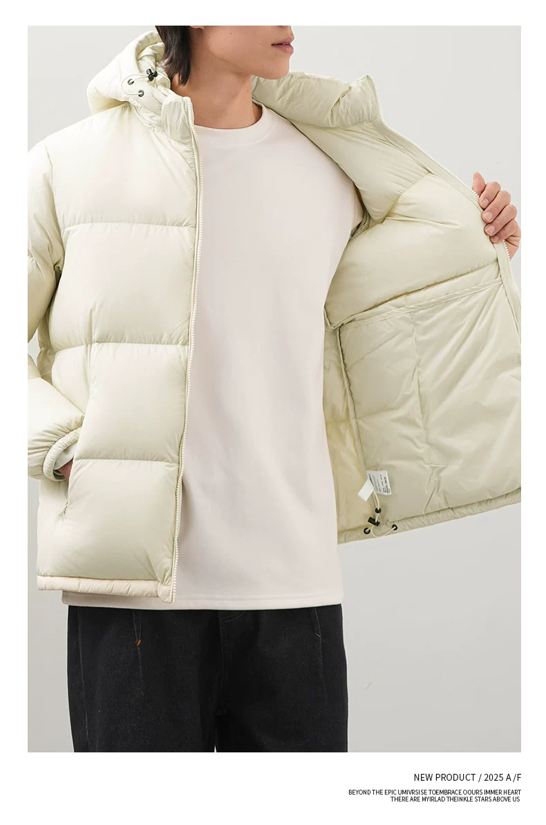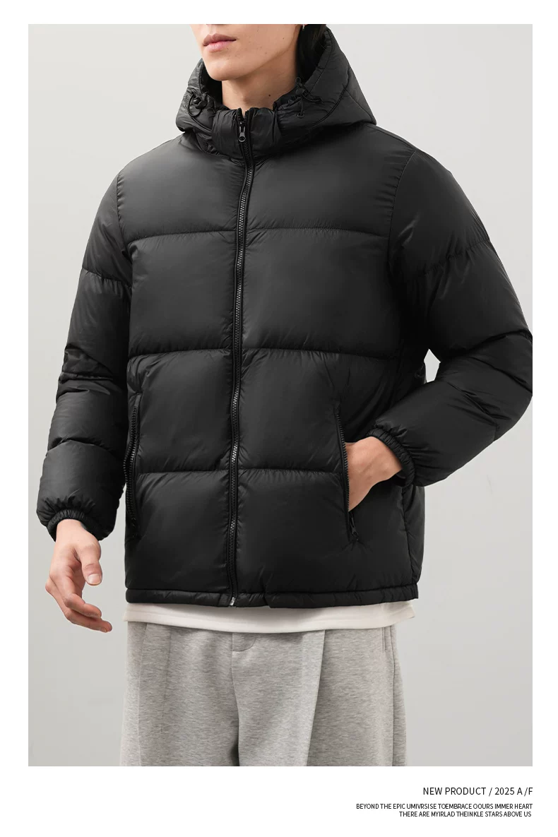 Áo khoác lông vũ có mũ trùm đầu OMZM90 dành cho nam, áo khoác phao dày dặn chống gió mùa đông mới có mũ trùm đầu có thể tháo rời.
