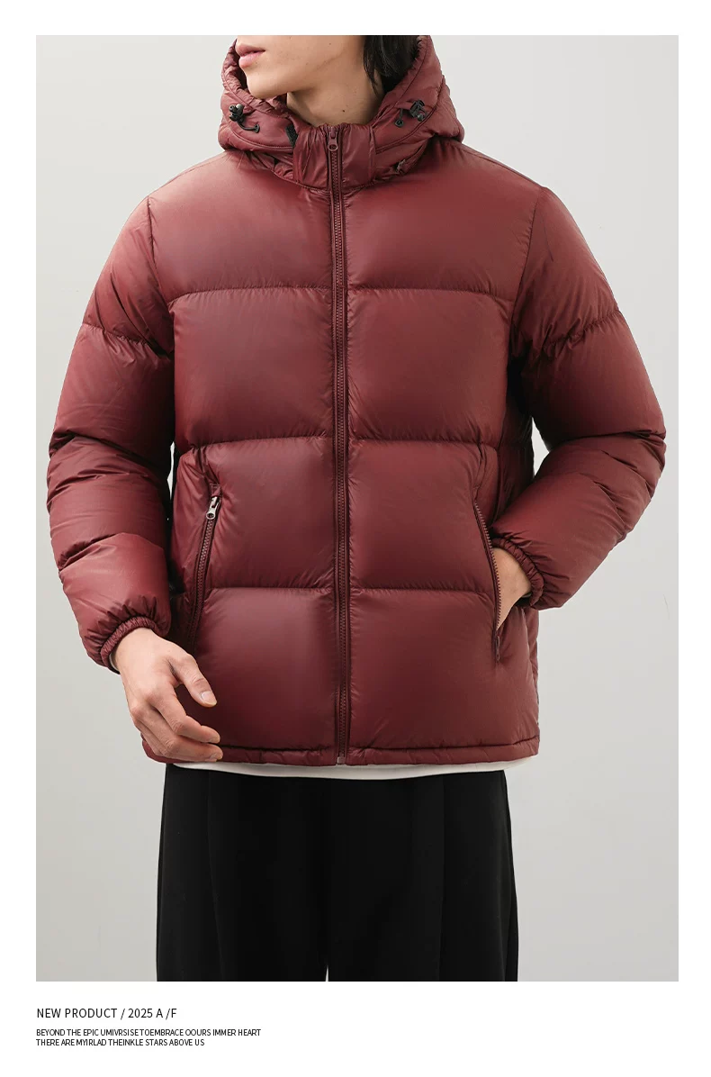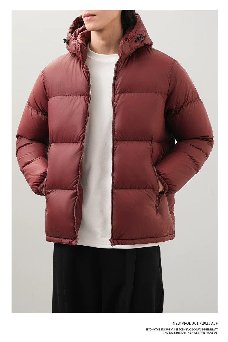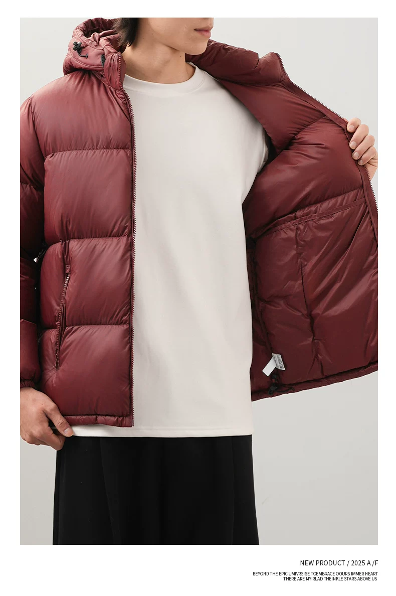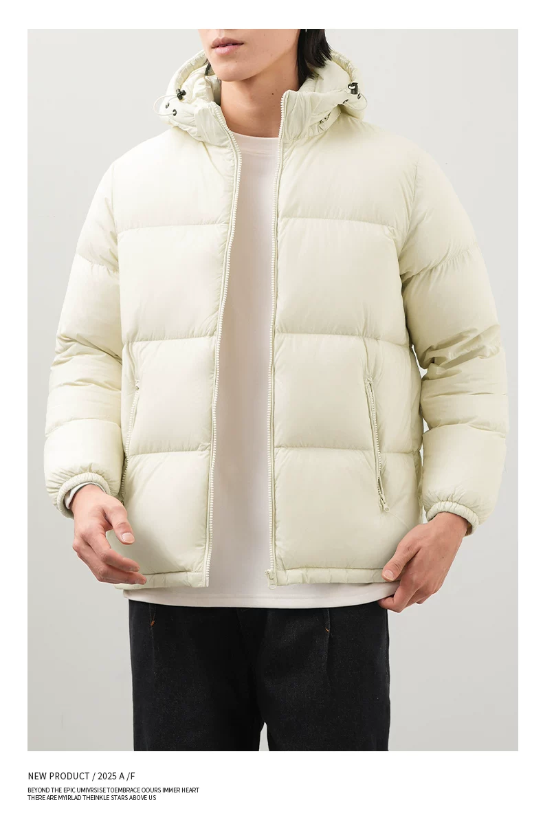 Áo khoác lông vũ có mũ trùm đầu OMZM90 dành cho nam, áo khoác phao dày dặn chống gió mùa đông mới có mũ trùm đầu có thể tháo rời.