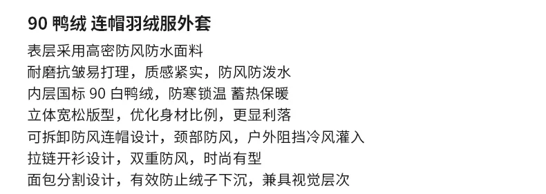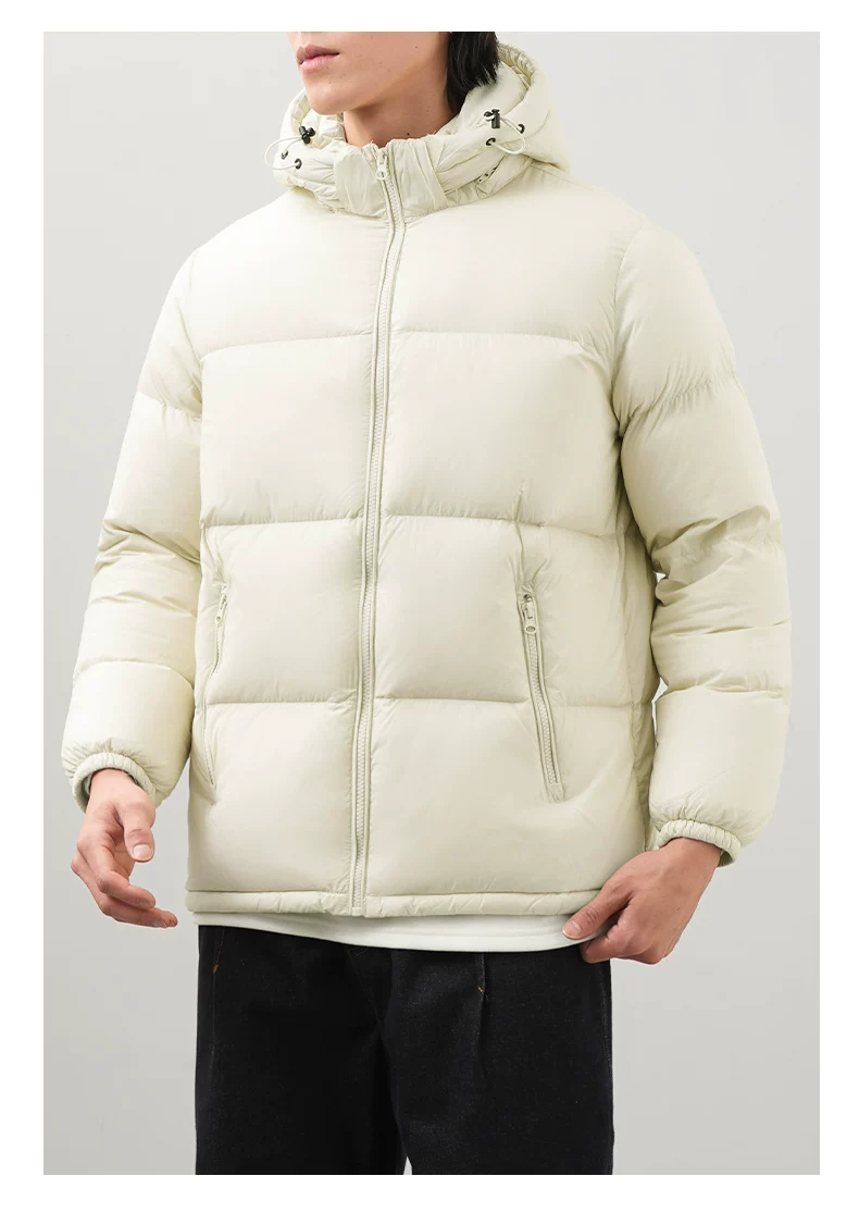 - Áo khoác lông vũ có mũ trùm đầu OMZM90 dành cho nam, áo khoác phao dày dặn chống gió mùa đông mới có mũ trùm đầu có thể tháo rời.