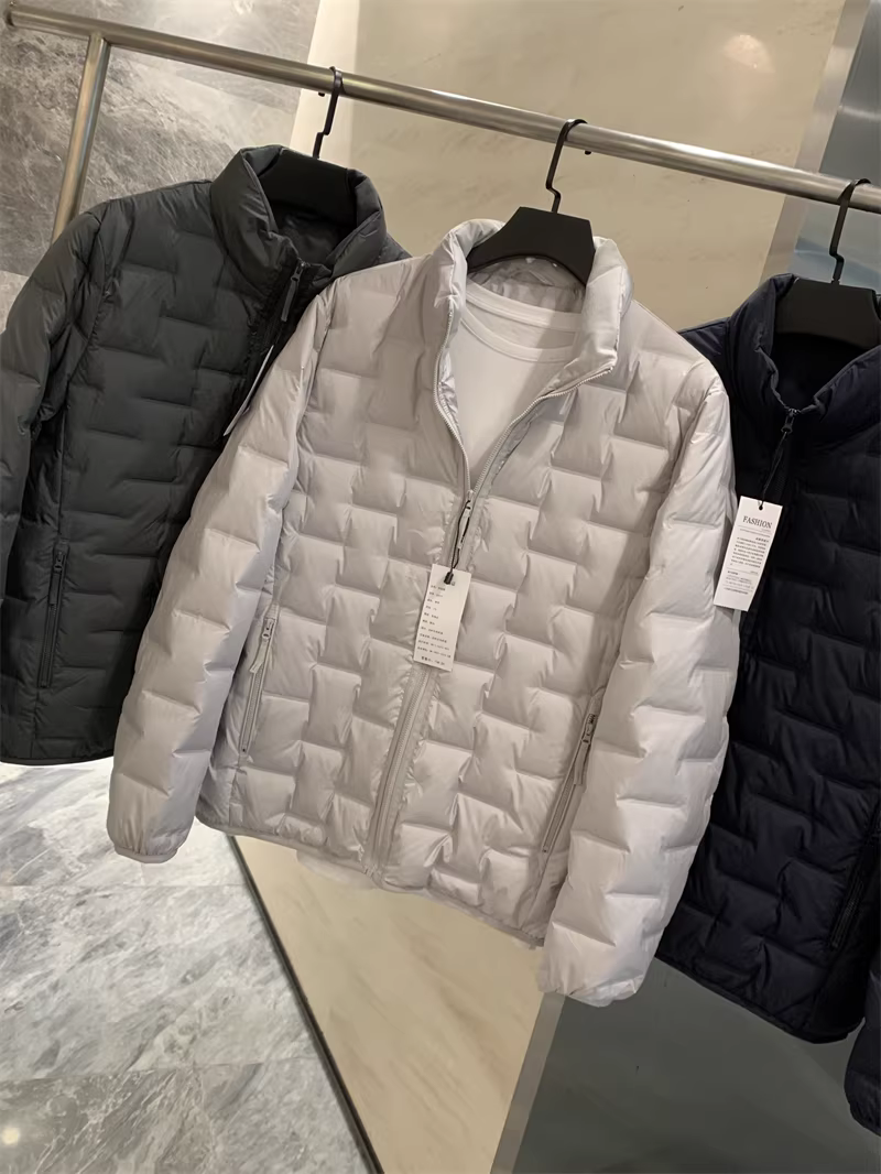 Áo khoác lông vũ nam Don Quixote 90% lông vịt + đường may được dán! Nhẹ, giữ nhiệt, ấm áp, cổ đứng, kiểu ngắn.