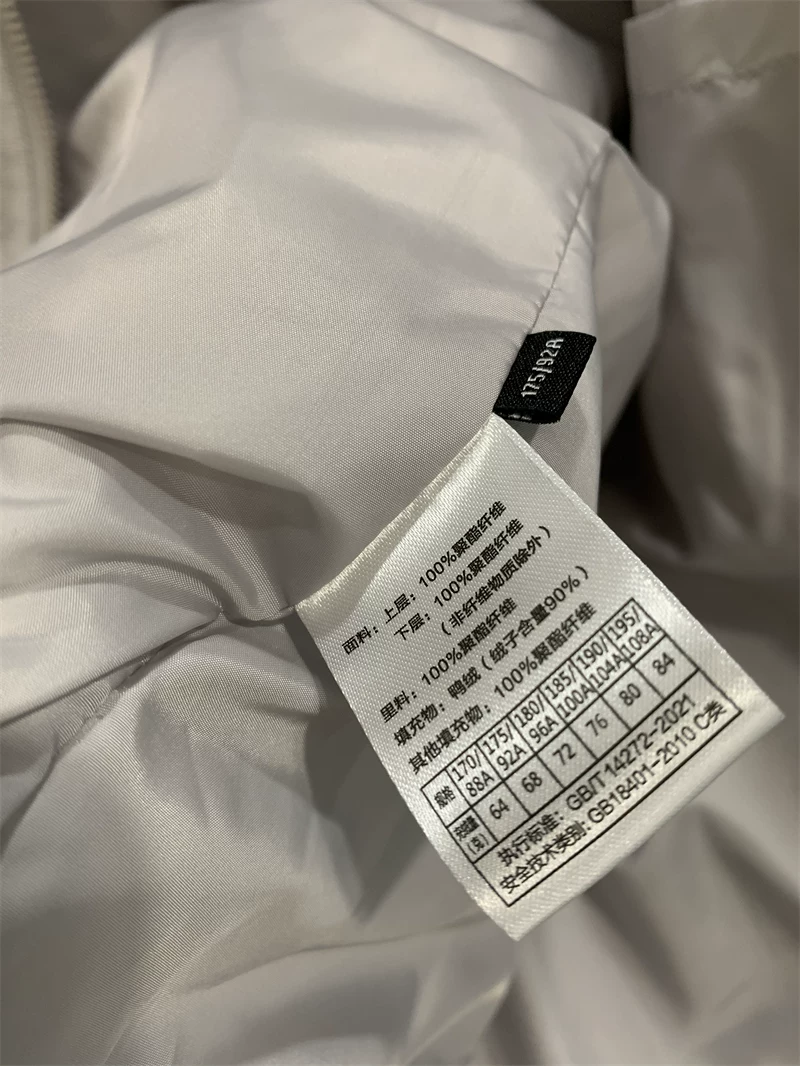 | 185 | 肩宽49.4 | 胸围122 | 袖长65.5 | 衣长72 | 充绒量75g |