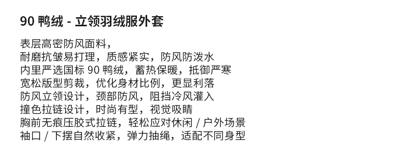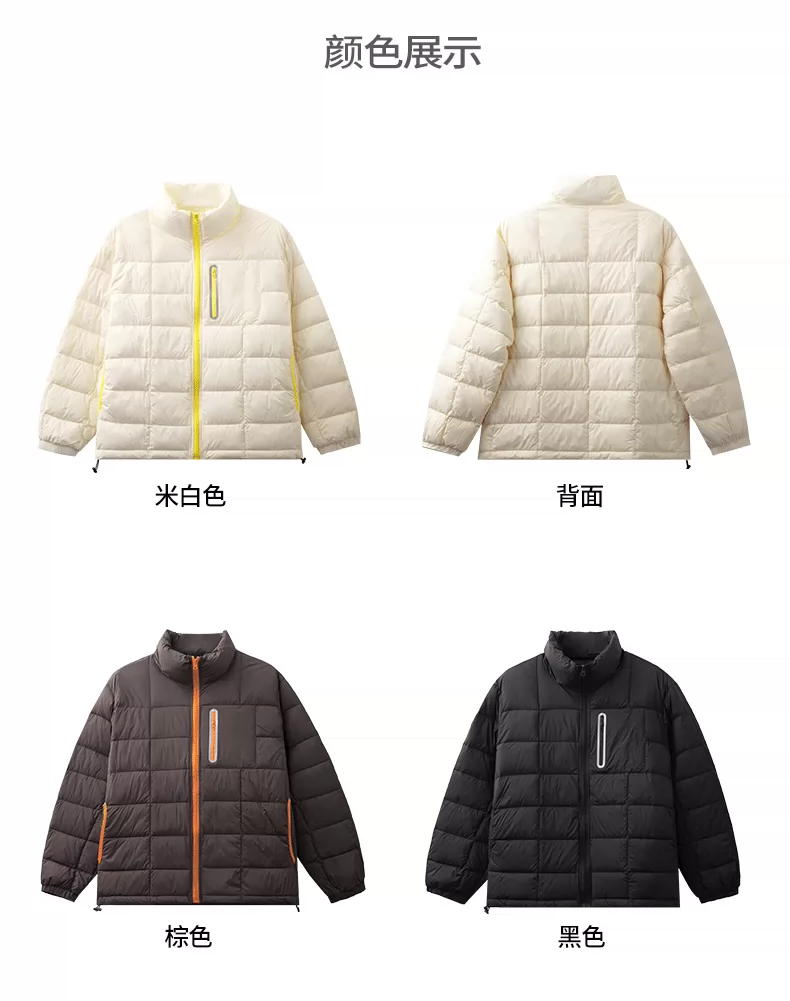 - Áo khoác lông vũ OMZM90 dành cho nam, chất liệu gân, nhẹ và dày dặn cho mùa đông, áo phao ấm áp với cổ đứng màu tương phản.