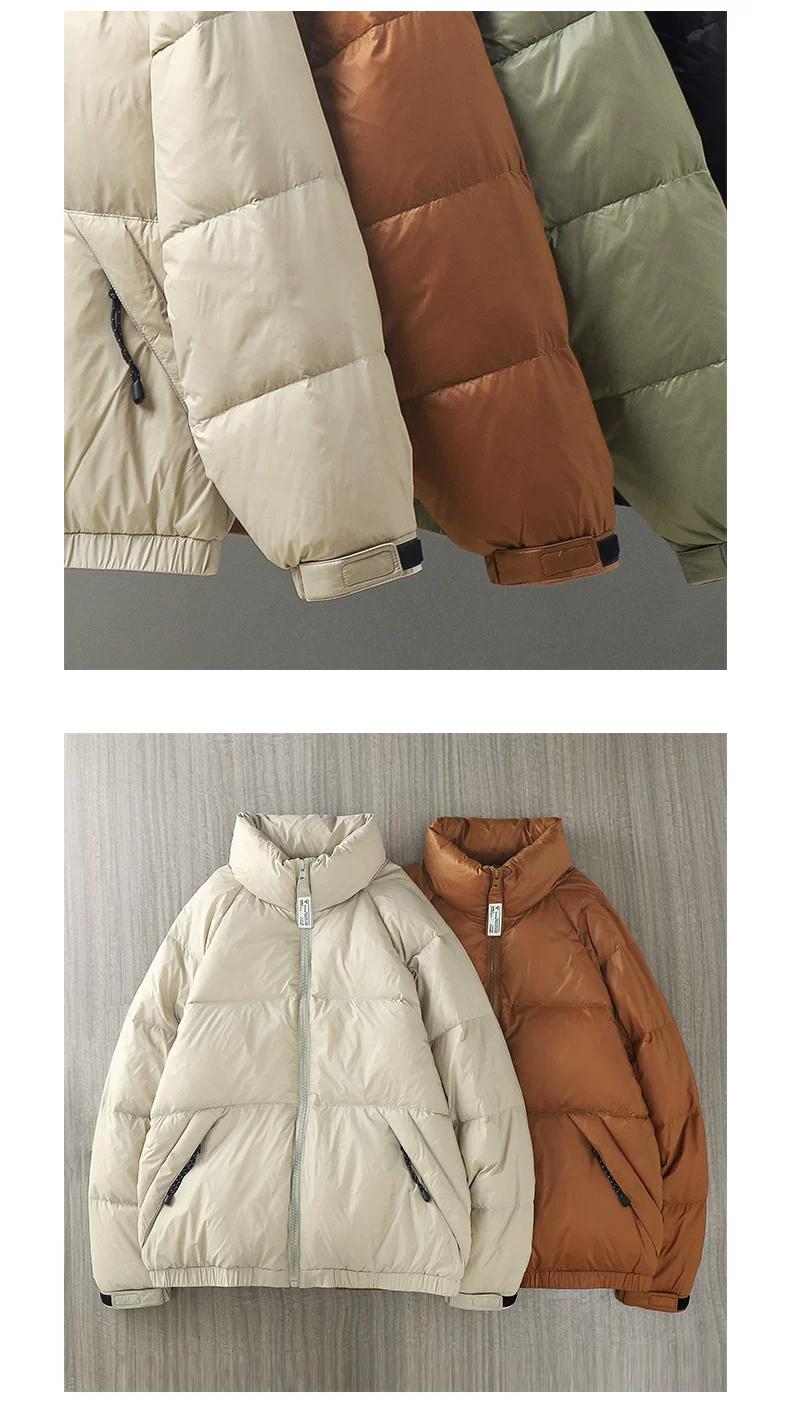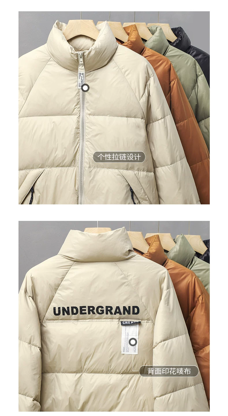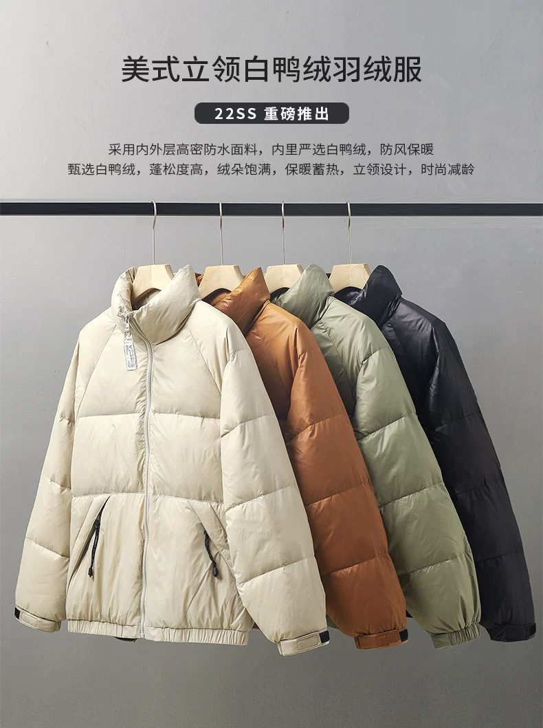 - Áo khoác lông vũ trắng cổ đứng kiểu Mỹ OMZM dành cho nam, áo khoác phao dày dặn ấm áp mùa đông, áo khoác cotton in họa tiết thương hiệu thời thượng.
