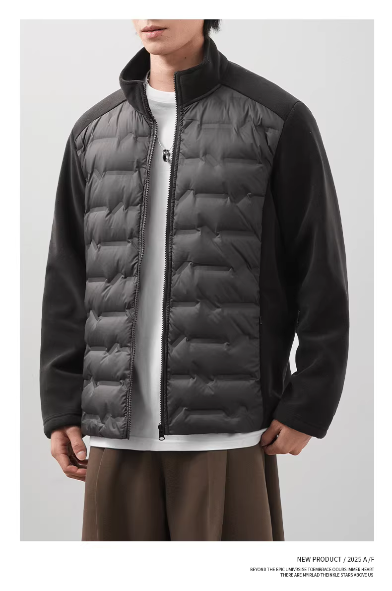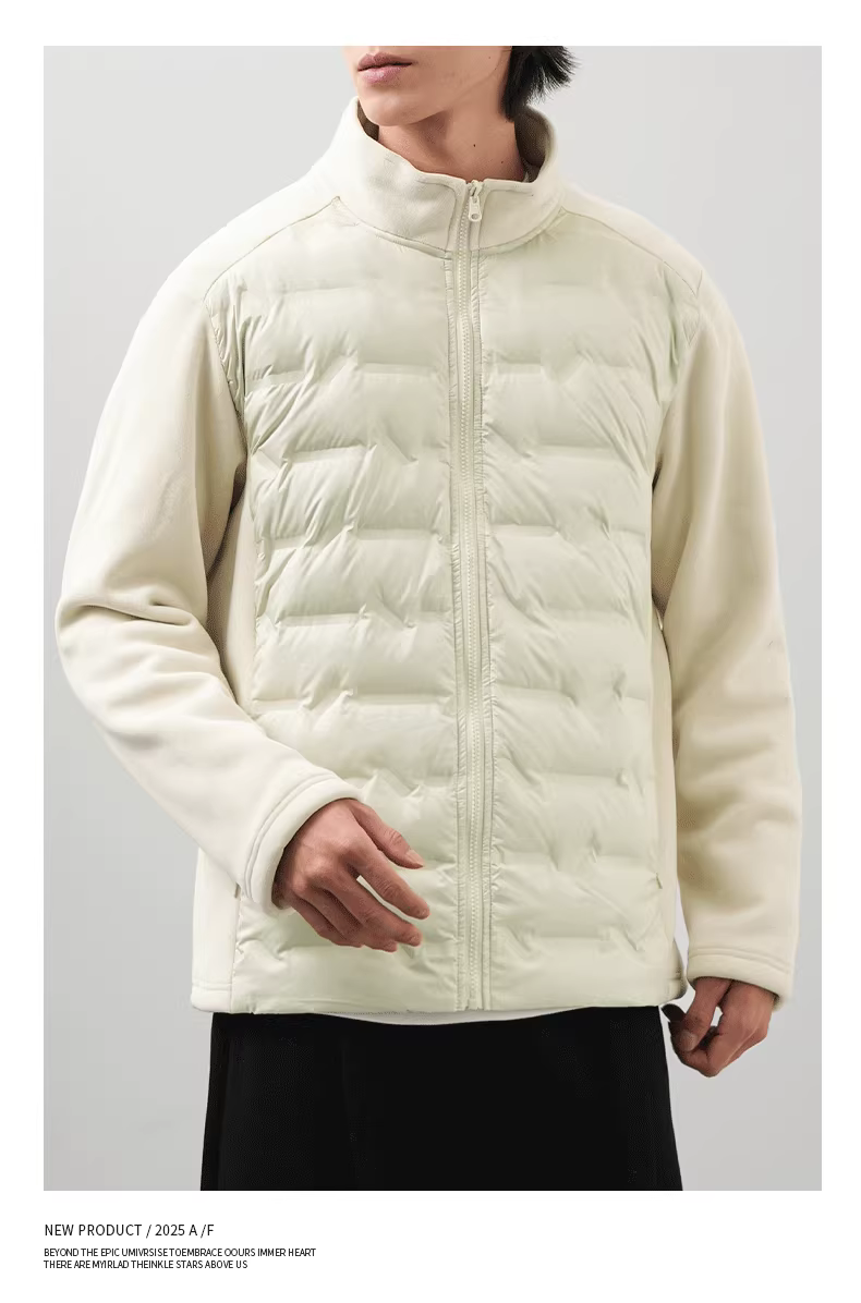 Áo khoác lông vũ trắng nguyên chất 90% dành cho nam, lớp lót bên trong mùa đông nhẹ với đường may bằng lông cừu, áo khoác cổ đứng ấm áp.
