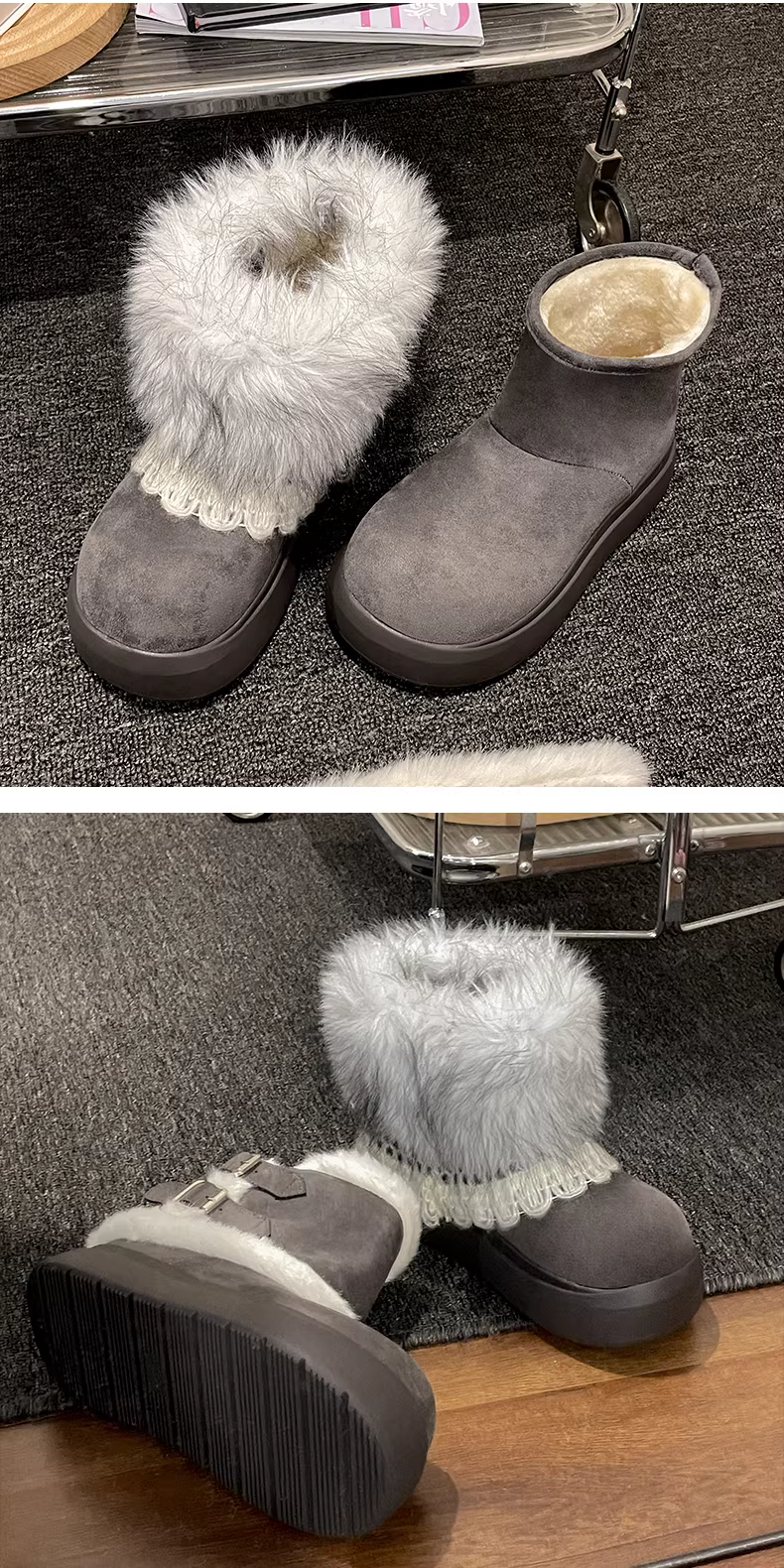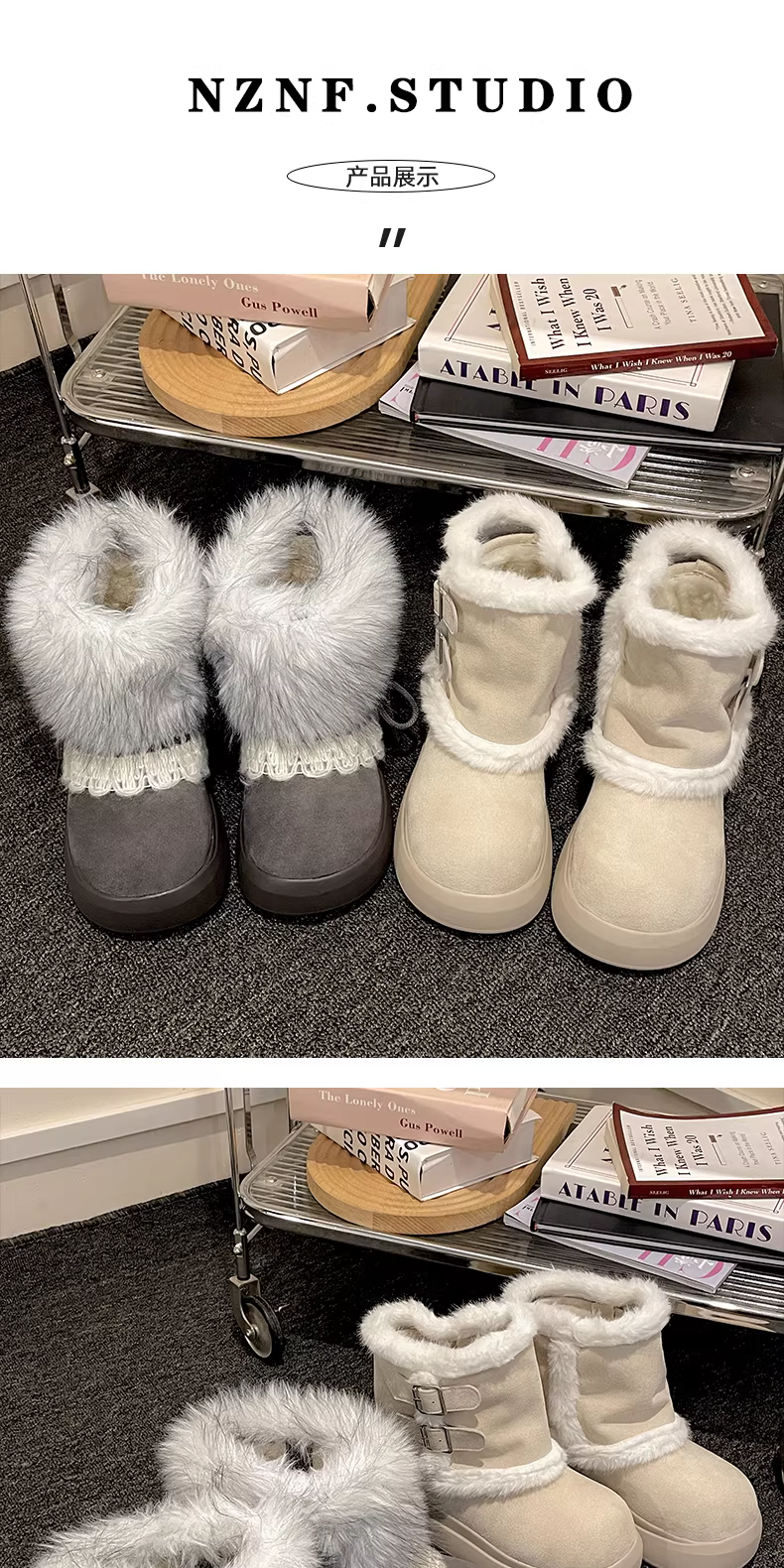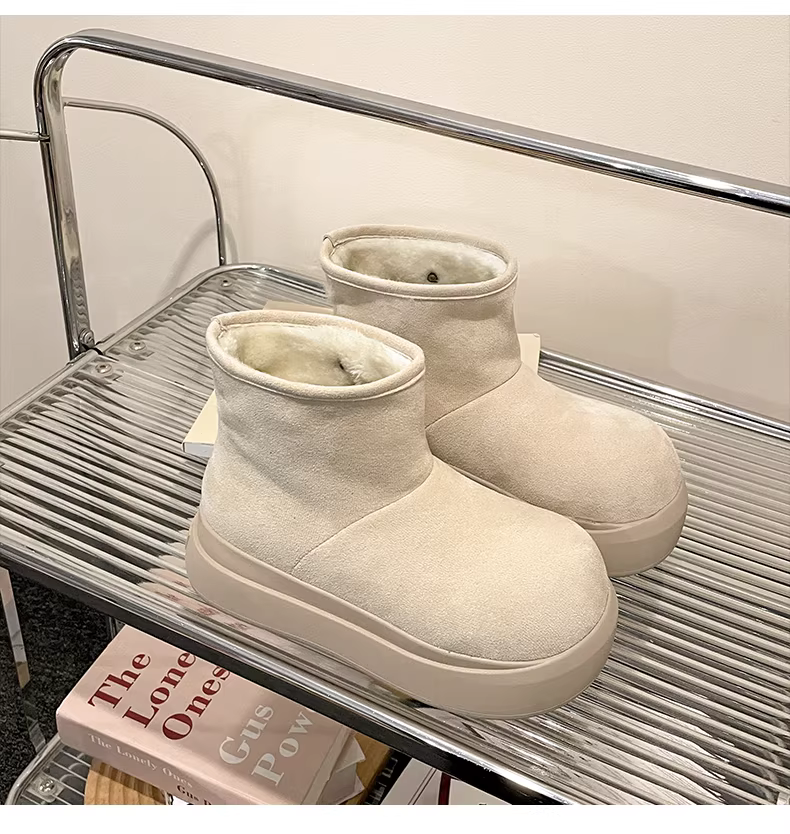- Áo khoác ngoài ấm áp lót lông cừu kiểu cổ điển, ủng tuyết lông dày đế dày dành cho nữ, mẫu mới mùa đông 2025, giày cotton họa tiết Fair Isle dày dặn