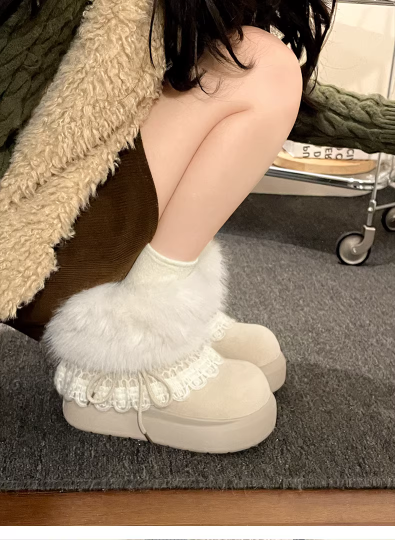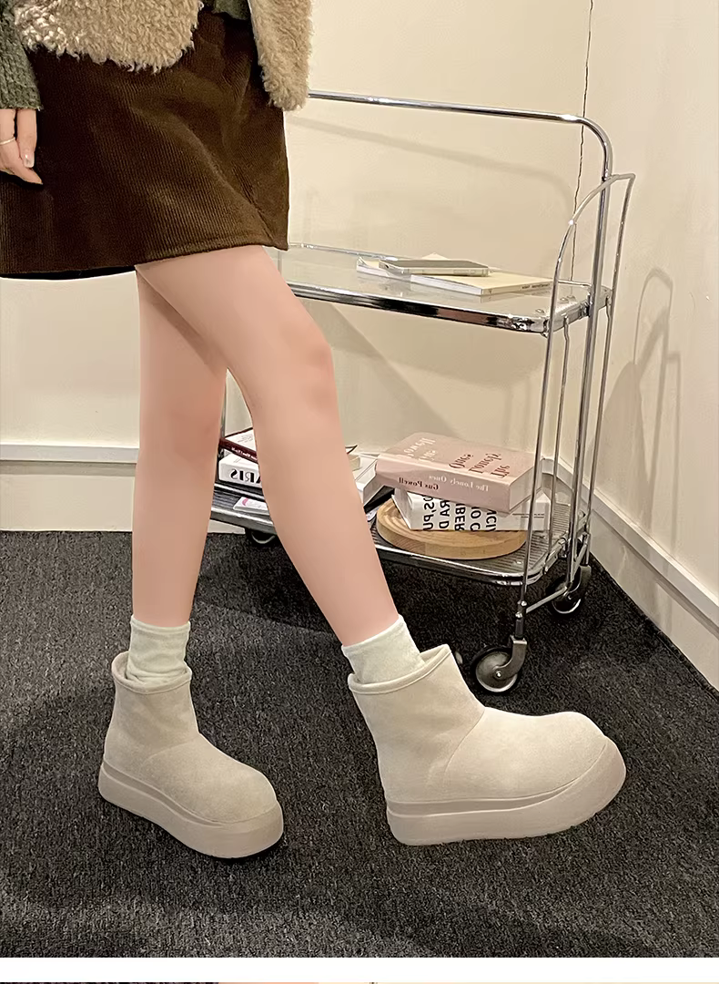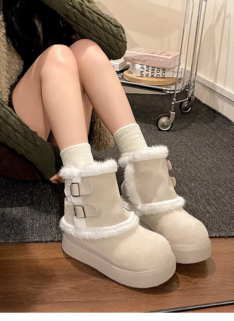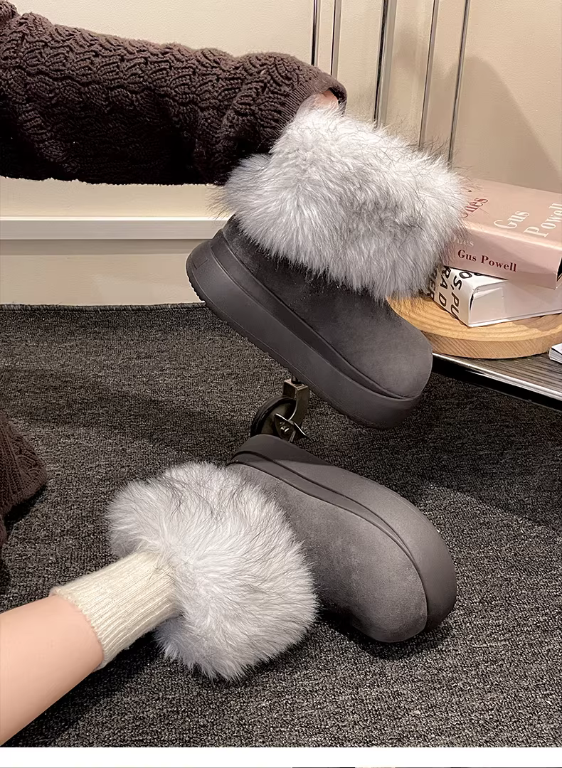 - Áo khoác ngoài ấm áp lót lông cừu kiểu cổ điển, ủng tuyết lông dày đế dày dành cho nữ, mẫu mới mùa đông 2025, giày cotton họa tiết Fair Isle dày dặn
