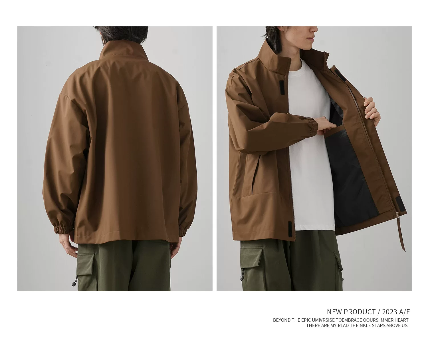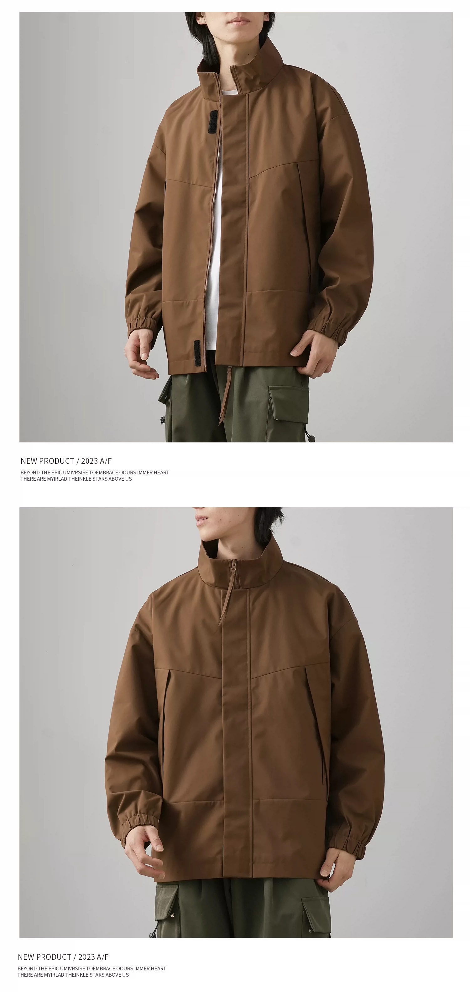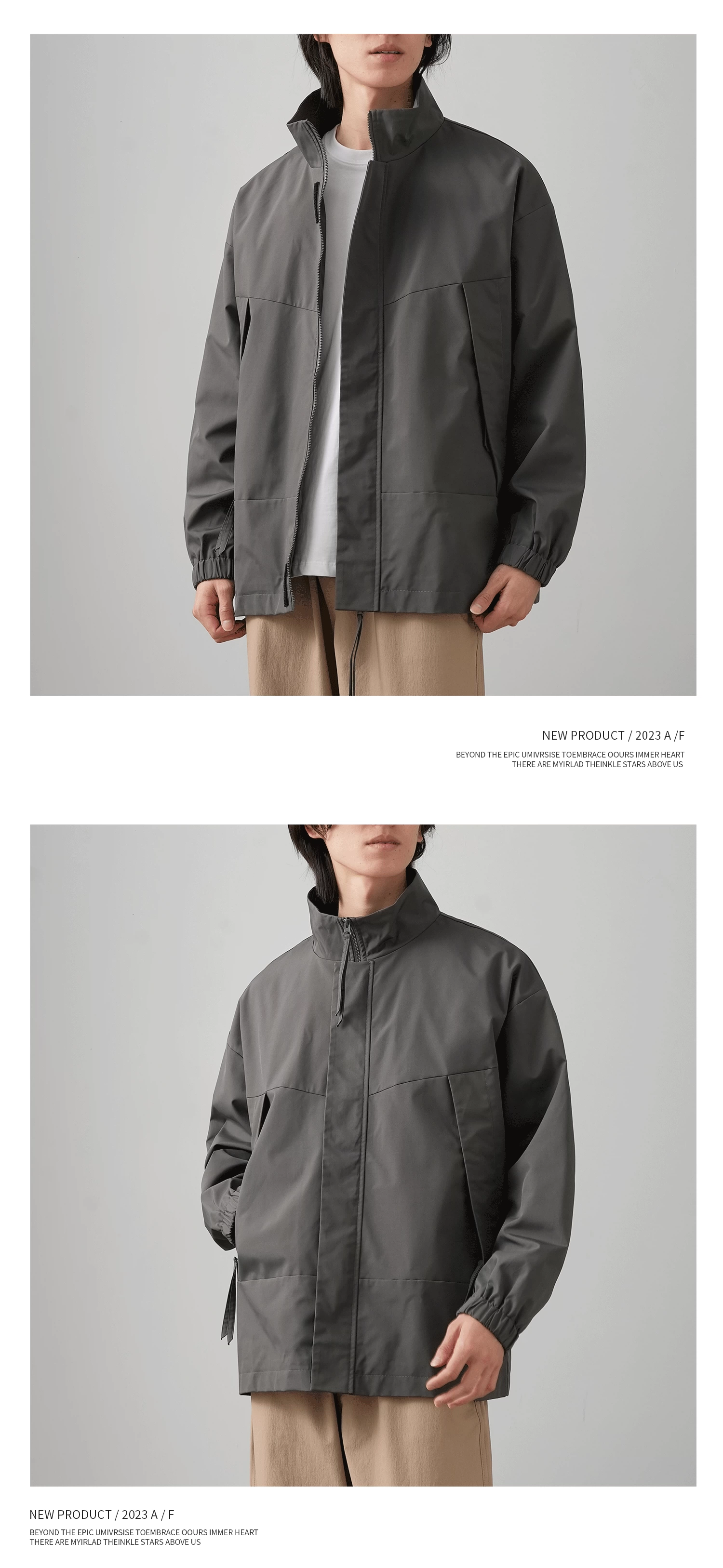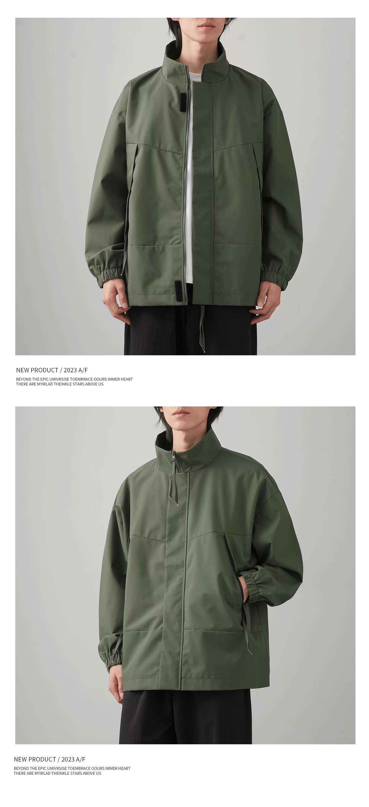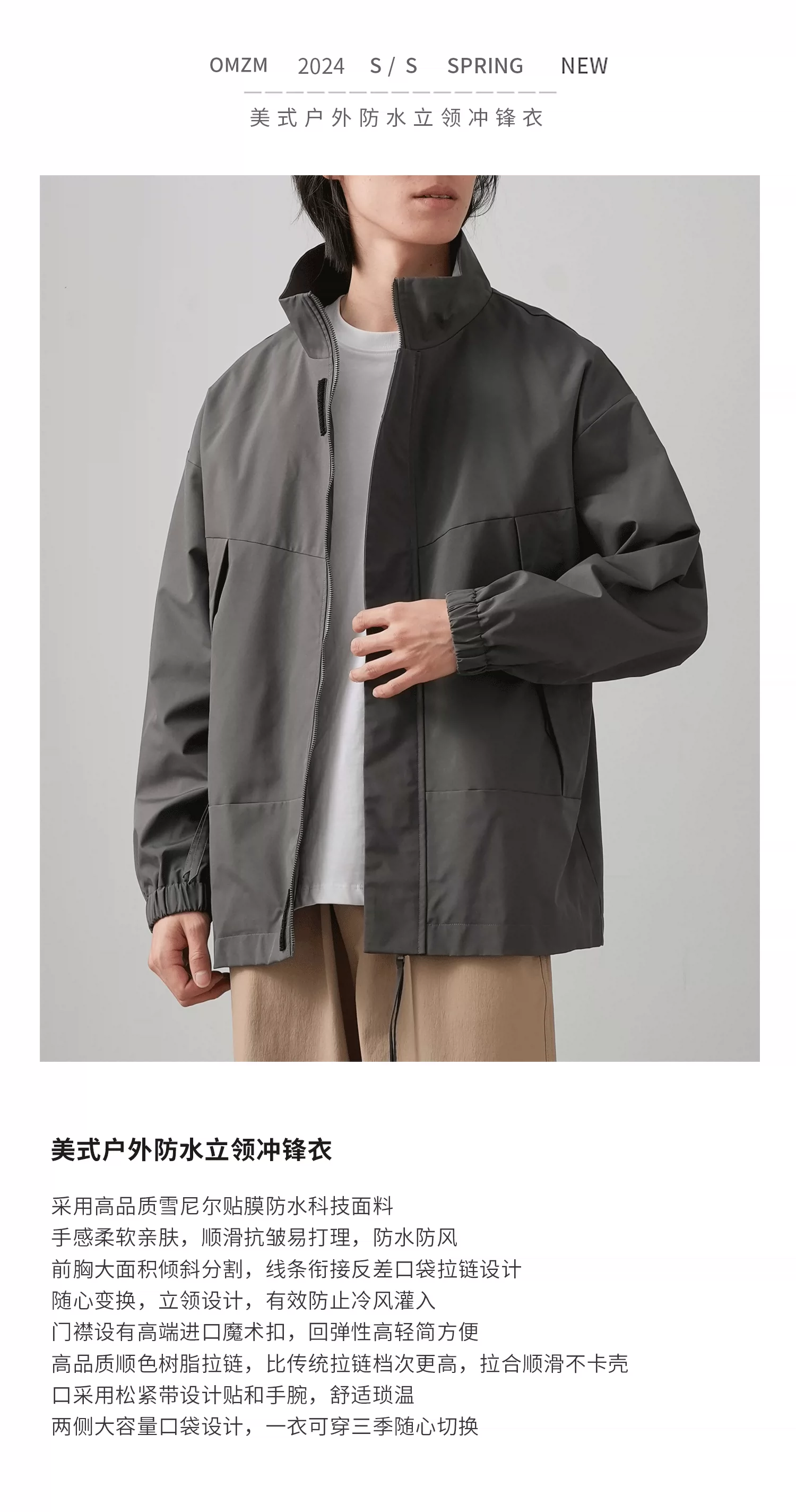 - Áo khoác ngoài phong cách Mỹ OMZM dành cho nam 2024, mẫu mới mùa xuân, chống gió và chống nước, cổ đứng, dáng rộng, kiểu giản dị