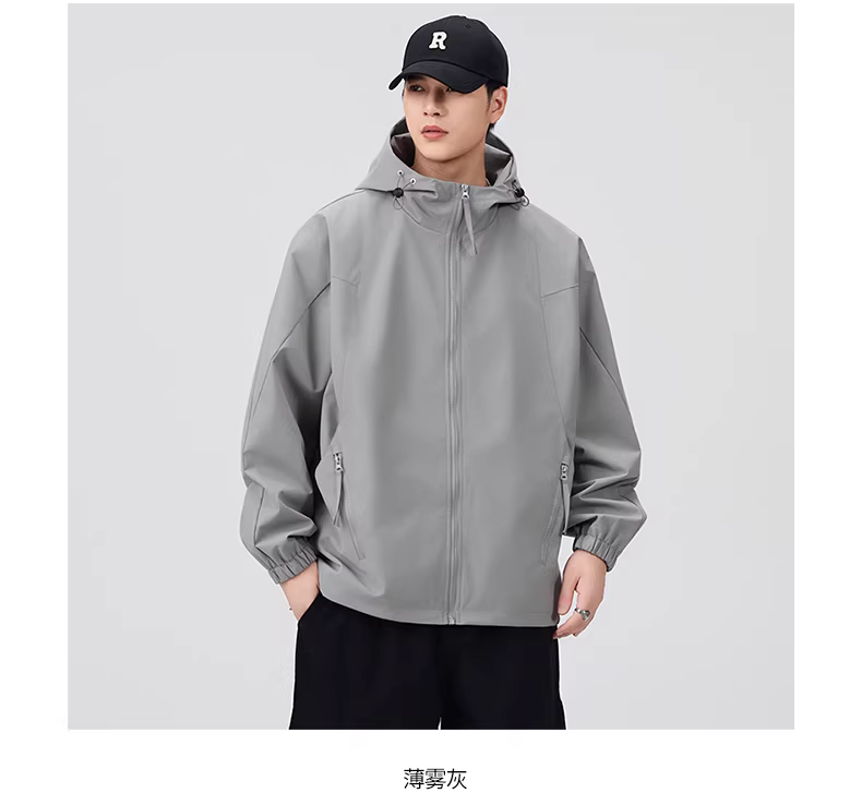 - Áo khoác ngoài trời có mũ trùm đầu dành cho nam, mùa thu, sành điệu, tiện dụng, chống gió, chống thấm nước, quần áo đi bộ đường dài, áo khoác thể thao rộng rãi, hợp thời trang.