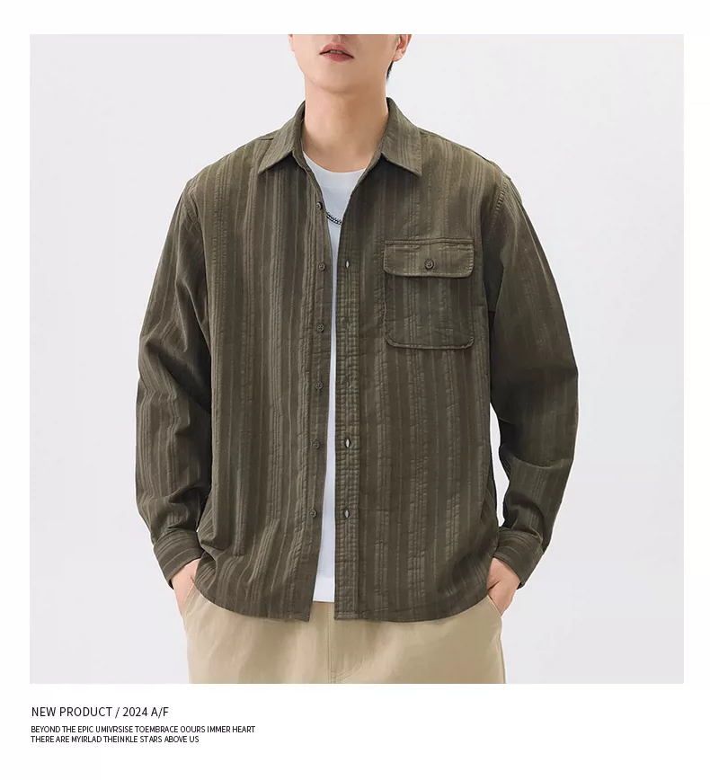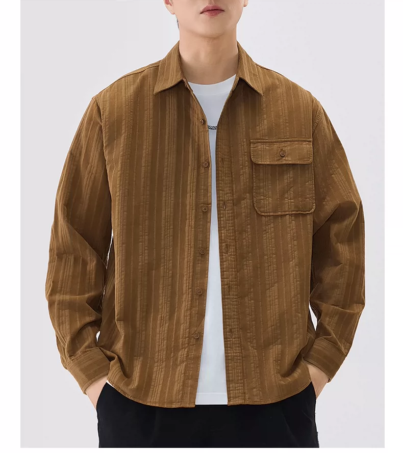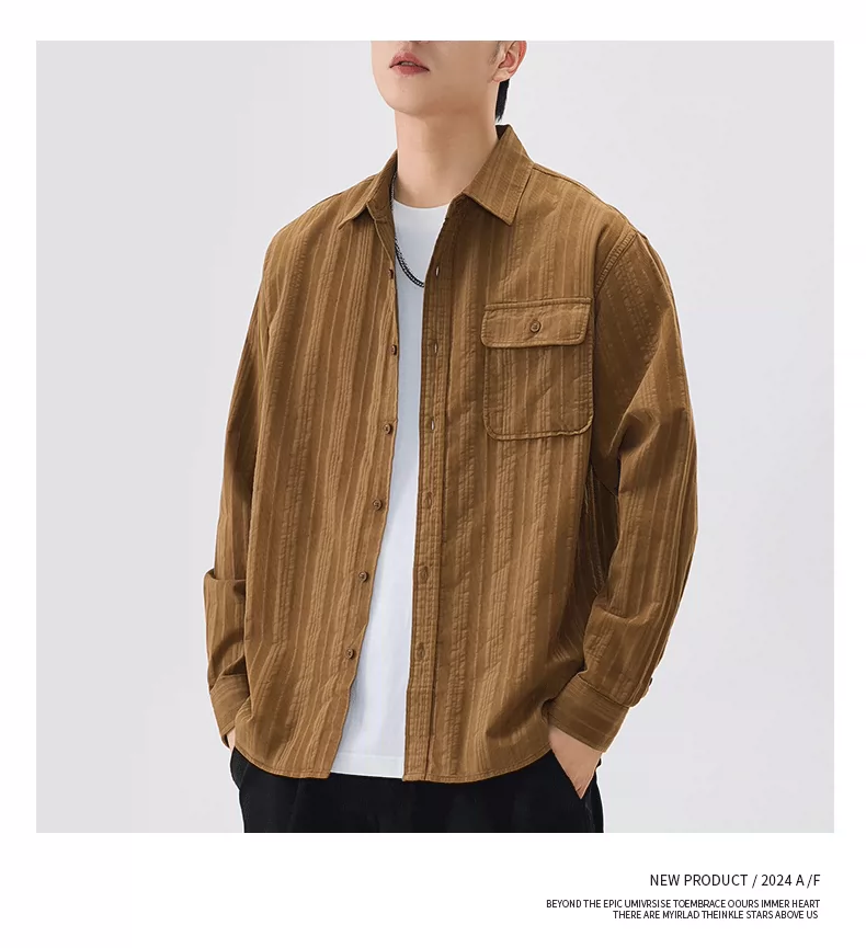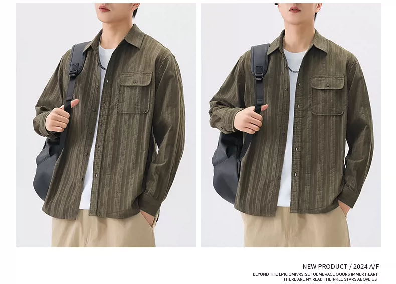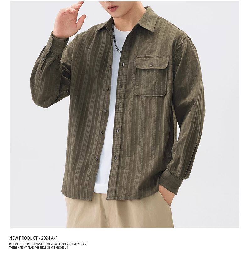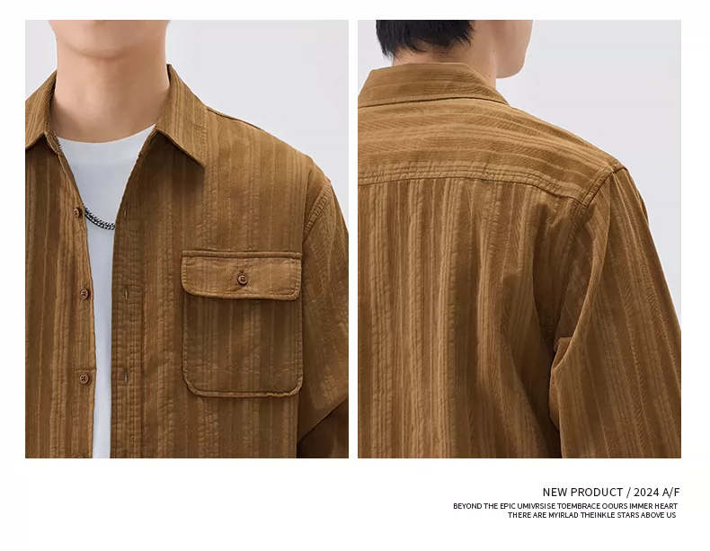 - Áo khoác nhung dày OMZM dành cho nam mùa thu đông 2024, áo sơ mi nhung ấm áp, phong cách Mỹ cổ điển, áo khoác rộng rãi kiểu công nhân