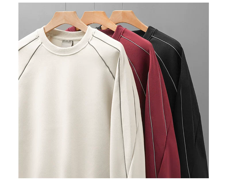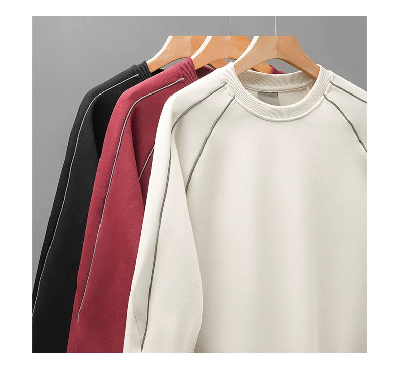 Áo khoác nỉ hạng nặng OMZM dành cho nam, áo chui đầu cổ tròn kiểu Mỹ mùa thu, kiểu dáng ghép mảnh, áo sơ mi không mũ dành cho giới trẻ